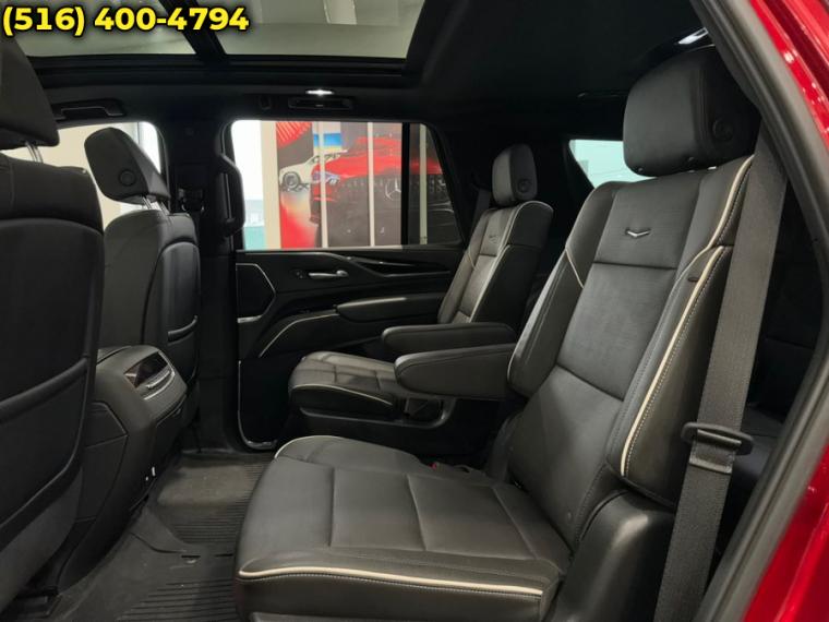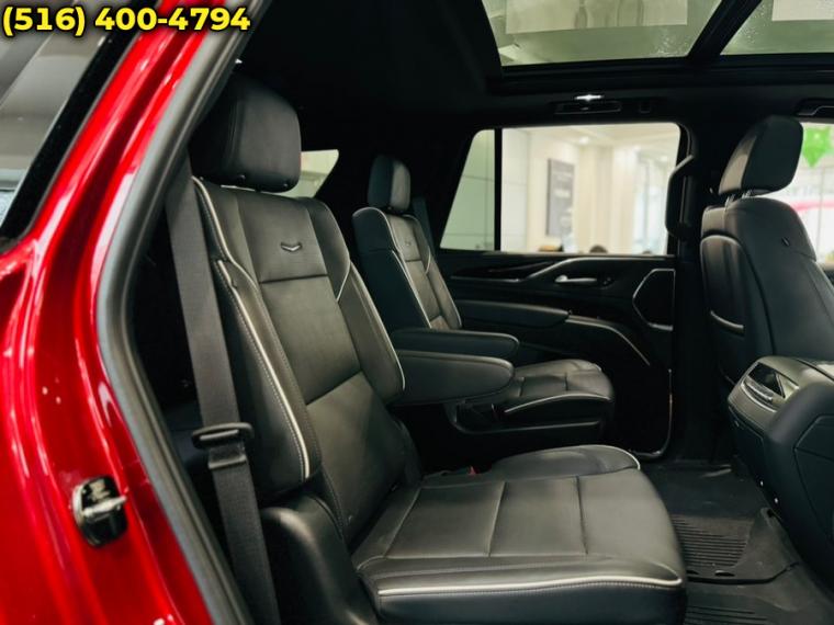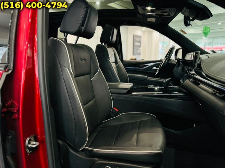 10-Speed A/T, ABS, 4-Wheel Disc Brakes, 8 Cylinder Engine, A/C, A/T, Active Suspension, 3rd Row Seat, Adjustable Steering Wheel, Aerial View Display System, Security System, Aluminum Wheels, AM/FM Stereo, Transmission w/Dual Shift Mode, Automatic Headlights, Automatic Highbeams, Automatic Parking, Auxiliary Audio Input, Back-Up Camera, Blind Spot Monitor, Brake Assist, Bucket Seats, Child Safety Locks, Climate Control, Cooled Front Seat(s), Cross-Traffic Alert, Cruise Control, Driver Air Bag, Driver Adjustable Lumbar, Driver Restriction Features, Multi-Zone A/C, Stability Control, Four Wheel Drive, Front Collision Mitigation, Front Collision Warning, Floor Mats, Gasoline Fuel, Hands-Free Liftgate, HD Radio, Heads-Up Display, Heated Front Seat(s), Heated Mirrors, Heated Rear Seat(s), Heated Steering Wheel, Integrated Turn Signal Mirrors, Intermittent Wipers, Keyless Entry, Keyless Start, Leather Seats, Locking/Limited Slip Differential, Luggage Rack, Mirror Memory, MP3 Capability, Navigation System, Panoramic Roof, Pass-Through Rear Seat, Passenger Air Bag, Passenger Air Bag Sensor, Passenger Adjustable Lumbar, Power Door Locks, Power Mirror(s), Power Driver Seat, Power Folding Mirrors, Power Liftgate, Power Passenger Seat, Power Steering, Premium Sound System, Privacy Glass, Rain Sensing Wipers, Rear A/C, Rear Collision Mitigation, Rear Defrost, Rear Head Air Bag, Rear Parking Aid, Remote Engine Start, Remote Trunk Release, Running Boards/Side Steps, Satellite Radio, Seat Memory, Front Side Air Bag, Front Head Air Bag, Smart Device Integration, Steering Wheel Audio Controls, Generic Sun/Moonroof, Tire Pressure Monitor, Tires - Front Performance, Tires - Rear Performance, Traction Control, Tow Hitch, Transmission Overdrive Switch, Universal Garage Door Opener, Variable Speed Intermittent Wipers, Immobilizer, Wheel Locks, WiFi Hotspot, Bluetooth Connection, Active Aero Shutters, front (Deleted when (LM2) 3.0L Turbo Diesel engine is ordered.), Assist steps, running board (Upgradeable to (B3L) power-retractable assist steps.), Door handles, body-color, Door handles, illuminating, Glass, acoustic, laminated windshield, Glass, deep-tinted, Hands-Free Liftgate open and close, programmable memory height, with Cadillac branded projection light, Headlamp control, automatic leveling system, Headlamps, automatic on/off, Headlamps, LED, IntelliBeam, automatic high beam on/off, LPO, Wheel locks, includes 4 locks and 1 key (Included with RPO Code (SMD). Deleted when any LPO wheels are ordered.), Luggage rack, roof-mounted, Gloss Black, Mirrors, outside heated power-adjustable power-folding, body-color, driver-side auto-dimming, integrated turn signal indicators and puddle lighting, Moldings, Gloss Black, bodyside, Rear Camera Mirror Washer, Spare tire lock, hoist shaft, Sunroof, power, panoramic with tilt, slide, express-open/close and sun shade control, Tail lamps, LED illumination, Tire, spare 265/70R17SL all-season, blackwall, Tires, 275/50R22SL all-season, blackwall, Wheels, 22" (55.9 cm) 12-Spoke alloy, Polished with Dark Android finish, Windshield, solar absorbing, Wiper, rear intermittent, Wipers, front intermittent, Rainsense, Adaptive Cruise Control, Adaptive Remote Start, Air conditioning, rear, Air filter, pollutant, odor and fine dust, Ambient lighting, interior, selectable, Augmented Reality live image of what is in front of the vehicle displayed on the 14.2" diagonal Cluster Display. When a navigational route is active, the system will overlay directional information on the live image being displayed, Climate control, tri-zone automatic with individual climate settings for driver, right-front passenger and rear passengers (includes rear air vents), Console, floor with covered storage, large and small storage bins, dual cup holders, electronic climate controls and second row heated seat controls. Also includes auxiliary power outlet, USB A/C ports and 110-volt outlet, Console, overhead, Defogger, rear-window, Door lock and latch shields, Door locks, power programmable with lockout protection and delayed locking, Floor covering, color-keyed carpeting, Floor mats, color-keyed carpeted first and second row, removable (Deleted when (VYW) Premium carpeted floor mats, LPO is ordered.), Head-Up Display, full-color, reconfigurable (includes the following views: Speed, Audio/Phone, Navigation and Performance), Keyless Open includes extended range Remote Keyless Entry, Memory settings includes two "presets" for driver seat adjuster, outside mirrors and power tilt/telescoping steering column, Power outlet, 110-volt, Power outlet, front auxiliary, 12-volt, located in front console (Standard with (D07) Floor console with covered storage only.), Rear Camera Mirror, Seat adjuster, driver 4-way power lumbar (Beginning with start of production through December 31, 2022, vehicles will be forced to include (R6S) Not Equipped with 4-Way Driver and Front Passenger Power Lumbar, which removes 4-way driver and front passenger power lumbar. Vehicles will be equipped with 2-way driver and front passenger power lumbar. S, Seat adjuster, driver 8-way power, Seat adjuster, front passenger 4-way power lumbar (Beginning with start of production through December 31, 2022, vehicles will be forced to include (R6S) Not Equipped with 4-Way Driver and Front Passenger Power Lumbar, which removes 4-way driver and front passenger power lumbar. Vehicles will be equipped with 2-way driver and front passenger power, Seat adjuster, front passenger 8-way power, Seat trim, Leather, Seats, front bucket (Includes 12-way driver and front passenger adjustments. Beginning with start of production, vehicles will be forced to include (R6S) Not Equipped with 4-Way Driver and Front Passenger Power Lumbar, which removes 4-way driver and front passenger power lumbar. Vehicles will be equipped with 2-way driver and front passenger power, Seats, heated and ventilated driver and front passenger, Seats, heated driver and front passenger, Seats, hea