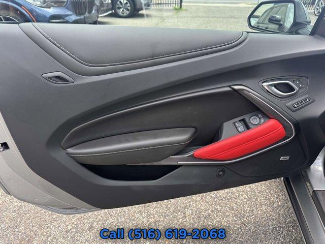 REMOTE VEHICLE STARTER SYSTEM, SHARKSKIN METALLIC, SEATS LEATHER-TRIMMED FRONT SPORT BUCKET (STD), KNEE PADS RED INCLUDES DOOR TRIM, AUDIO SYSTEM CHEVROLET INFOTAINMENT 3 PLUS SYSTEM 8 DIAGONAL HD COLOR TOUCHSCREEN AM/FM STEREO Bluetooth audio streaming for 2 active devices Apple CarPlay and Android Auto capable voice recognition in-vehicle apps cloud connected personalization for select infotainment and vehicle settings. Subscription required for enhanced and connected services after trial period. (STD), JET BLACK SEAT TRIM, LAUNCH CONTROL CUSTOM, PADDLE-SHIFT MANUAL CONTROLS, SATIN BLACK APPEARANCE PACKAGE includes Satin Black outside mirrors and rear spoiler, EMBLEM BLACK CAMARO FENDER BADGE WITH RED OUTLINE, REAR AXLE 2.77 RATIO, 2SS PREFERRED EQUIPMENT GROUP includes standard equipment, REDLINE EDITION GRAPHICS, REDLINE EDITION includes (SRI/58E) 20 Black-painted aluminum wheels with Red accents (CG6) Black Camaro fender badge with Red outline (VUP) Redline Edition graphics (3F9) Red seat belt color and (2F5) Red knee pads, SEAT BELT COLOR RED, TRANSMISSION 10-SPEED AUTOMATIC includes transmission oil cooler and (BTV) remote vehicle starter system, ENGINE 6.2L (376 CI) V8 DI VVT (455 hp [339.3 kW] @ 6000 rpm 455 lb-ft of torque [614.3 N-m] @ 4400 rpm) (STD), TIRES 245/40ZR20 FRONT AND 275/35ZR20 REAR BLACKWALL SUMMER-ONLY RUN-FLAT (STD), EXHAUST DUAL-MODE, WHEELS 20 X 8.5 (50.8 CM X 21.6 CM) FRONT AND 20 X 9.5 (50.8 CM X 24.1 CM) REAR BLACK-PAINTED ALUMINUM WITH RED ACCENTS, Power Driver Seat, Mirror Memory, Seat Memory, Locking/Limited Slip Differential, Rear Wheel Drive, Power Steering, ABS, 4-Wheel Disc Brakes, Aluminum Wheels, Tires - Front Performance, Tires - Rear Performance, Rear Spoiler, Heated Mirrors, Power Mirror(s), Intermittent Wipers, Variable Speed Intermittent Wipers, AM/FM Stereo, MP3 Capability, Bluetooth Connection, Auxiliary Audio Input, Smart Device Integration, Premium Sound System, WiFi Hotspot, Satellite Radio, Requires Subscription, Satellite Radio, Requires Subscription, Bluetooth Connection, Bluetooth Connection, Smart Device Integration, Leather Seats, Bucket Seats, Power Driver Seat, Power Passenger Seat, Heated Front Seat(s), Heated Front Seat(s), Cooled Front Seat(s), Pass-Through Rear Seat, Floor Mats, Heated Steering Wheel, Leather Steering Wheel, Adjustable Steering Wheel, Heads-Up Display, Climate Control, Multi-Zone A/C, A/C, Power Windows, Power Door Locks, Keyless Entry, Power Door Locks, Keyless Start, Cruise Control, Back-Up Camera, Driver Vanity Mirror, Passenger Vanity Mirror, Driver Illuminated Vanity Mirror, Passenger Illuminated Visor Mirror, Remote Trunk Release, Security System, Rear Defrost, Front Reading Lamps, Traction Control, Stability Control, Brake Assist, Daytime Running Lights, Driver Air Bag, Passenger Air Bag, Front Side Air Bag, Front Head Air Bag, Rear Head Air Bag, Passenger Air Bag Sensor, Knee Air Bag, Telematics, Requires Subscription, Rear Parking Aid, Back-Up Camera, Cross-Traffic Alert, Front Collision Warning, Blind Spot Monitor, Emergency Trunk Release, Driver Restriction Features, Tire Pressure Monitor, Tire Pressure Monitor