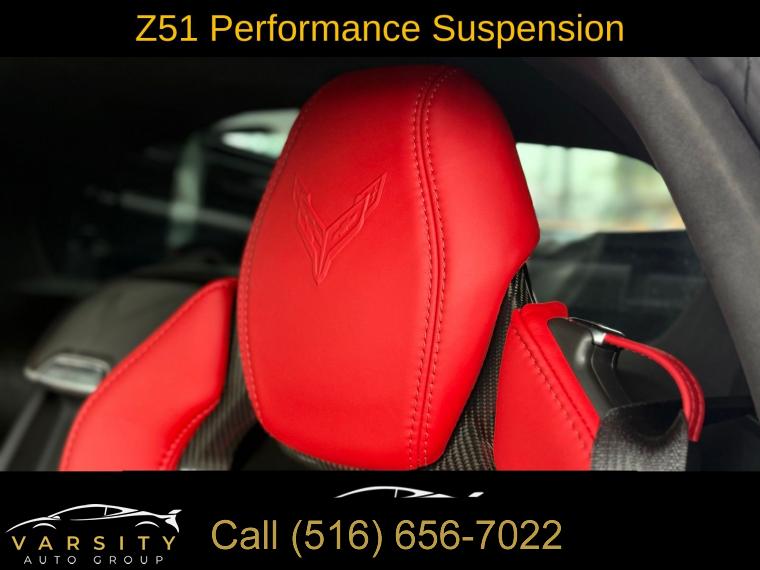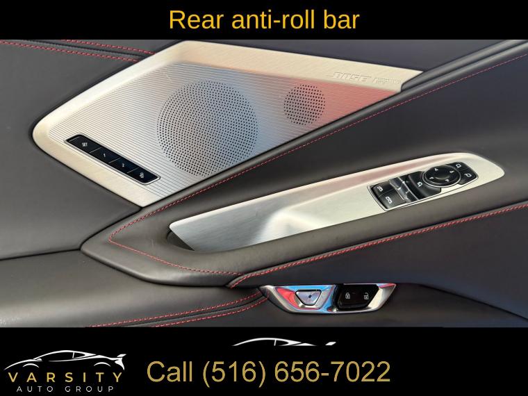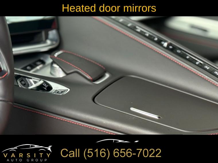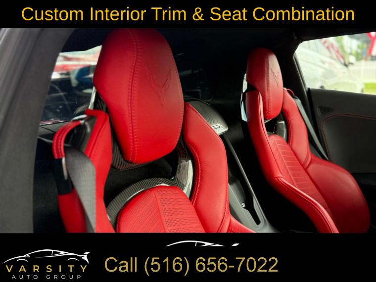 Navigation System, Custom Leather Wrapped Interior Package, Memory Driver & Passenger Convenience Package, Preferred Equipment Group 3LT, Z51 Performance Package, 14 Speakers, AM/FM radio: SiriusXM, Bose Performance Series Sound System w/14 Speakers, HD Radio, Premium audio system: Chevrolet Infotainment 3 Premium, Radio data system, Radio: Chevrolet Infotainment 3 Premium System, SiriusXM Radio, Air Conditioning, Automatic temperature control, Front dual zone A/C, Rear window defroster, 8-Way Power Driver Seat Adjuster, 8-Way Power Passenger Seat Adjuster, Head-Up Display, Heads-Up Display, Memory seat, Power driver seat, Power steering, Power windows, Remote keyless entry, Steering wheel memory, Steering wheel mounted audio controls, Universal Home Remote, Electronic Limited-Slip Differential, Four wheel independent suspension, Speed-sensing steering, Traction control, 4-Wheel Disc Brakes, ABS brakes, Dual front impact airbags, Dual front side impact airbags, Edge Red-Painted Calipers, Emergency communication system: OnStar and Chevrolet connected services capable, Front anti-roll bar, Low tire pressure warning, Occupant sensing airbag, Rear anti-roll bar, Z51 Performance Brakes, Body-Color Removable Roof Panel, Brake assist, Electronic Stability Control, Delay-off headlights, Fully automatic headlights, Electrical Theft Deterrent System, Panic alarm, Security system, Vehicle Inclination Theft Deterrent Sensor, Vehicle Interior Movement Theft Deterrent Sensor, Speed control, Heavy-Duty Cooling System, Auto-dimming door mirrors, Bumpers: body-color, Edge Red LT2 Engine Cover (LPO) (DISC), Front License Plate Bracket, Heated door mirrors, Performance Exhaust w/Stainless-Steel Tips, Power door mirrors, Power-Adjustable Outside Heated Mirrors, Rear Cross Traffic Alert, Rear Z51 Spoiler, Turn signal indicator mirrors, Z51 Performance Suspension, Apple CarPlay/Android Auto, Auto-dimming Rear-View mirror, Compass, Custom Interior Trim & Seat Combination, Driver door bin, Driver vanity mirror, Front reading lights, Garage door transmitter, GT2 Bucket Seats, HD Front & Rear Vision Cameras, Heated Steering Wheel, Heated steering wheel, Illuminated entry, Leather Shift Knob, Leather steering wheel, Outside temperature display, Overhead console, Passenger vanity mirror, Performance Data & Video Recorder, Rear Camera Mirror, Sport steering wheel, Sueded Microfiber-Wrapped Upper Interior Trim Pkg, Tachometer, Telescoping steering wheel, Tilt steering wheel, Trip computer, Voltmeter, Wireless Charging for Devices, Adrenaline Red Custom Leather Stitch, Driver Power Bolster Seat Adjuster, Front Bucket Seats, Front Center Armrest, Heated & Vented Driver & Passenger Seats, Heated front seats, Napa Lthr Seating Surfaces w/Perforated Inserts, Passenger Power Bolster Seat Adjuster, Power Driver Lumbar Control Seat Adjuster, Power Passenger Lumbar Control Seat Adjuster, Power passenger seat, Ventilated front seats, 2 Cargo Nets, Passenger door bin, Alloy wheels, Black Lug Nuts (LPO), Black Wheel Center Caps w/Gray Stingray Logo (LPO), Black Wheel Locks (LPO), Wheels: 19" x 8.5" Fr/20" x 11" Rr Bright Silver, Wheels: 19" x 8.5" Fr/20" x 11" Rr Carbon Flash, Side Blind Zone Alert, Variably intermittent wipers, Performance Rear Axle Ratio, The Price you See, is the Price You Pay!!!