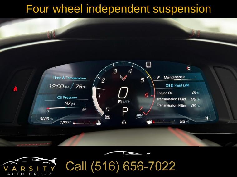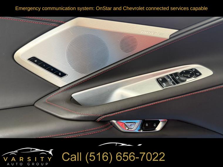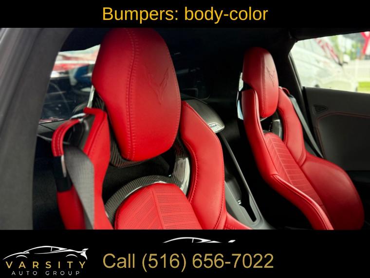 Navigation System, Custom Leather Wrapped Interior Package, Memory Driver & Passenger Convenience Package, Preferred Equipment Group 3LT, Z51 Performance Package, 14 Speakers, AM/FM radio: SiriusXM, Bose Performance Series Sound System w/14 Speakers, HD Radio, Premium audio system: Chevrolet Infotainment 3 Premium, Radio data system, Radio: Chevrolet Infotainment 3 Premium System, SiriusXM Radio, Air Conditioning, Automatic temperature control, Front dual zone A/C, Rear window defroster, 8-Way Power Driver Seat Adjuster, 8-Way Power Passenger Seat Adjuster, Head-Up Display, Heads-Up Display, Memory seat, Power driver seat, Power steering, Power windows, Remote keyless entry, Steering wheel memory, Steering wheel mounted audio controls, Universal Home Remote, Electronic Limited-Slip Differential, Four wheel independent suspension, Speed-sensing steering, Traction control, 4-Wheel Disc Brakes, ABS brakes, Dual front impact airbags, Dual front side impact airbags, Edge Red-Painted Calipers, Emergency communication system: OnStar and Chevrolet connected services capable, Front anti-roll bar, Low tire pressure warning, Occupant sensing airbag, Rear anti-roll bar, Z51 Performance Brakes, Body-Color Removable Roof Panel, Brake assist, Electronic Stability Control, Delay-off headlights, Fully automatic headlights, Electrical Theft Deterrent System, Panic alarm, Security system, Vehicle Inclination Theft Deterrent Sensor, Vehicle Interior Movement Theft Deterrent Sensor, Speed control, Heavy-Duty Cooling System, Auto-dimming door mirrors, Bumpers: body-color, Edge Red LT2 Engine Cover (LPO) (DISC), Front License Plate Bracket, Heated door mirrors, Performance Exhaust w/Stainless-Steel Tips, Power door mirrors, Power-Adjustable Outside Heated Mirrors, Rear Cross Traffic Alert, Rear Z51 Spoiler, Turn signal indicator mirrors, Z51 Performance Suspension, Apple CarPlay/Android Auto, Auto-dimming Rear-View mirror, Compass, Custom Interior Trim & Seat Combination, Driver door bin, Driver vanity mirror, Front reading lights, Garage door transmitter, GT2 Bucket Seats, HD Front & Rear Vision Cameras, Heated Steering Wheel, Heated steering wheel, Illuminated entry, Leather Shift Knob, Leather steering wheel, Outside temperature display, Overhead console, Passenger vanity mirror, Performance Data & Video Recorder, Rear Camera Mirror, Sport steering wheel, Sueded Microfiber-Wrapped Upper Interior Trim Pkg, Tachometer, Telescoping steering wheel, Tilt steering wheel, Trip computer, Voltmeter, Wireless Charging for Devices, Adrenaline Red Custom Leather Stitch, Driver Power Bolster Seat Adjuster, Front Bucket Seats, Front Center Armrest, Heated & Vented Driver & Passenger Seats, Heated front seats, Napa Lthr Seating Surfaces w/Perforated Inserts, Passenger Power Bolster Seat Adjuster, Power Driver Lumbar Control Seat Adjuster, Power Passenger Lumbar Control Seat Adjuster, Power passenger seat, Ventilated front seats, 2 Cargo Nets, Passenger door bin, Black Lug Nuts (LPO), Black Wheel Center Caps w/Gray Stingray Logo (LPO), Black Wheel Locks (LPO), Wheels: 19" x 8.5" Fr/20" x 11" Rr Carbon Flash, Side Blind Zone Alert, Variably intermittent wipers, Performance Rear Axle Ratio, The Price you See, is the Price You Pay!!!, Clean CARFAX