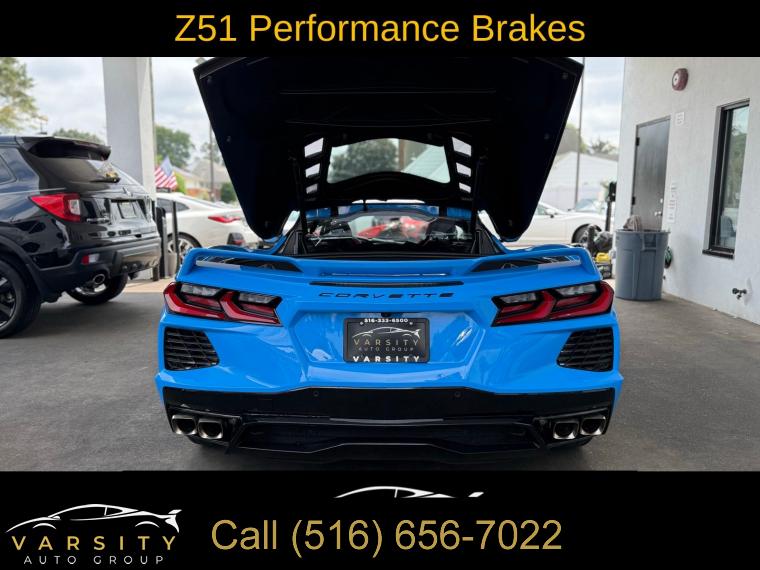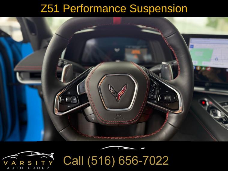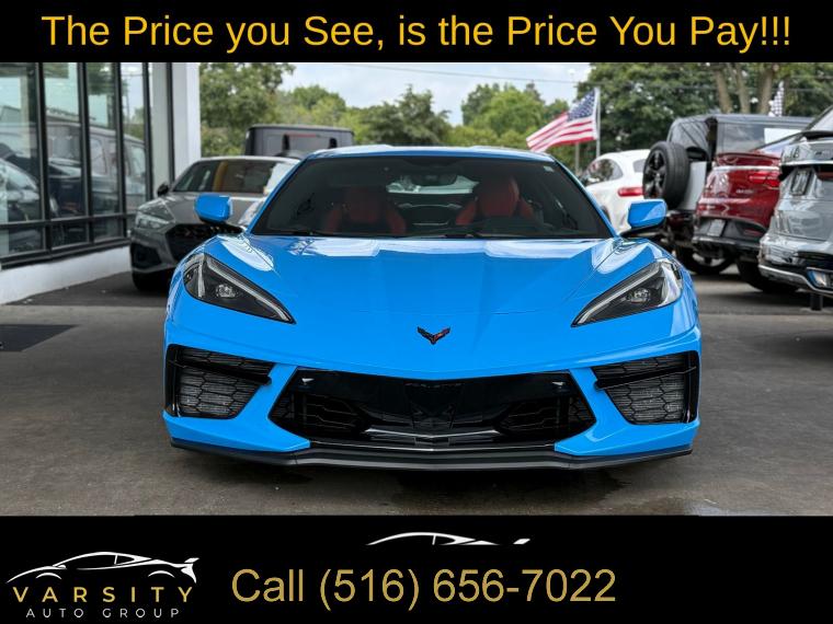 The Price you See, is the Price You Pay!!!, Z51 Performance Suspension, Clean CARFAX, 14 Speakers, 2 Cargo Nets, 4-Wheel Disc Brakes, 8-Way Power Driver Seat Adjuster, 8-Way Power Passenger Seat Adjuster, ABS brakes, Adrenaline Red Custom Leather Stitch, Air Conditioning, AM/FM radio: SiriusXM, Apple CarPlay/Android Auto, Auto-dimming door mirrors, Auto-dimming Rear-View mirror, Automatic temperature control, Black Lug Nuts (LPO), Black Wheel Center Caps w/Gray Stingray Logo (LPO), Black Wheel Locks (LPO), Body-Color Removable Roof Panel, Bose Performance Series Sound System w/14 Speakers, Brake assist, Bumpers: body-color, Compass, Custom Interior Trim & Seat Combination, Custom Leather Wrapped Interior Package, Delay-off headlights, Driver door bin, Driver Power Bolster Seat Adjuster, Driver vanity mirror, Dual front impact airbags, Dual front side impact airbags, Edge Red LT2 Engine Cover (LPO) (DISC), Edge Red-Painted Calipers, Electrical Theft Deterrent System, Electronic Limited-Slip Differential, Electronic Stability Control, Emergency communication system: OnStar and Chevrolet connected services capable, Four wheel independent suspension, Front anti-roll bar, Front Bucket Seats, Front Center Armrest, Front dual zone A/C, Front License Plate Bracket, Front reading lights, Fully automatic headlights, Garage door transmitter, GT2 Bucket Seats, HD Front & Rear Vision Cameras, HD Radio, Head-Up Display, Heads-Up Display, Heated & Vented Driver & Passenger Seats, Heated door mirrors, Heated front seats, Heated Steering Wheel, Heated steering wheel, Heavy-Duty Cooling System, Illuminated entry, Leather Shift Knob, Leather steering wheel, Low tire pressure warning, Memory Driver & Passenger Convenience Package, Memory seat, Napa Lthr Seating Surfaces w/Perforated Inserts, Navigation System, Occupant sensing airbag, Outside temperature display, Overhead console, Panic alarm, Passenger door bin, Passenger Power Bolster Seat Adjuster, Passenger vanity mirror, Performance Data & Video Recorder, Performance Exhaust w/Stainless-Steel Tips, Performance Rear Axle Ratio, Power door mirrors, Power Driver Lumbar Control Seat Adjuster, Power driver seat, Power Passenger Lumbar Control Seat Adjuster, Power passenger seat, Power steering, Power windows, Power-Adjustable Outside Heated Mirrors, Preferred Equipment Group 3LT, Premium audio system: Chevrolet Infotainment 3 Premium, Radio data system, Radio: Chevrolet Infotainment 3 Premium System, Rear anti-roll bar, Rear Camera Mirror, Rear Cross Traffic Alert, Rear window defroster, Rear Z51 Spoiler, Remote keyless entry, Security system, Side Blind Zone Alert, SiriusXM Radio, Speed control, Speed-sensing steering, Sport steering wheel, Steering wheel memory, Steering wheel mounted audio controls, Sueded Microfiber-Wrapped Upper Interior Trim Pkg, Tachometer, Telescoping steering wheel, Tilt steering wheel, Traction control, Trip computer, Turn signal indicator mirrors, Universal Home Remote, Variably intermittent wipers, Vehicle Inclination Theft Deterrent Sensor, Vehicle Interior Movement Theft Deterrent Sensor, Ventilated front seats, Voltmeter, Wheels: 19" x 8.5" Fr/20" x 11" Rr Carbon Flash, Wireless Charging for Devices, Z51 Performance Brakes, Z51 Performance Package, Z51 Performance Suspension. Rapid Blue 2023 Chevrolet Corvette Stingray 3LT RWD 8-Speed Dual Clutch 6.2L V8 Odometer is 1071 miles below market average!