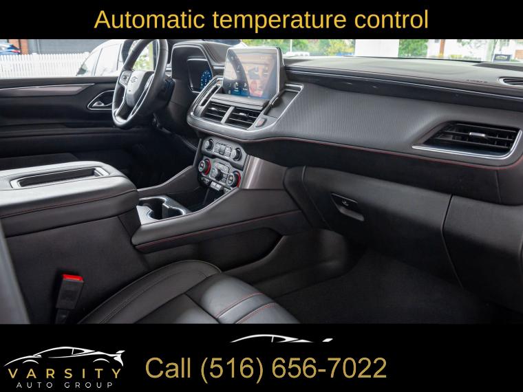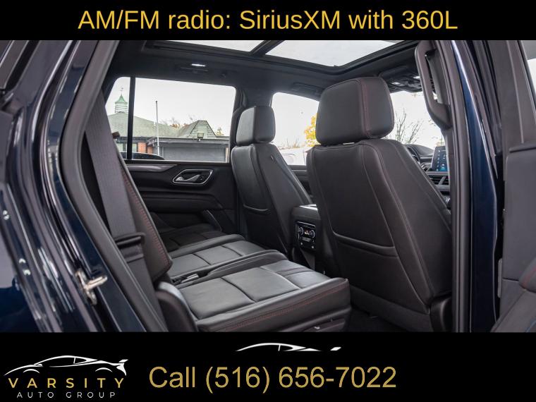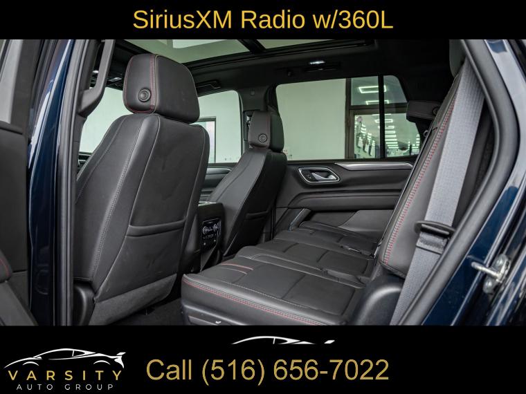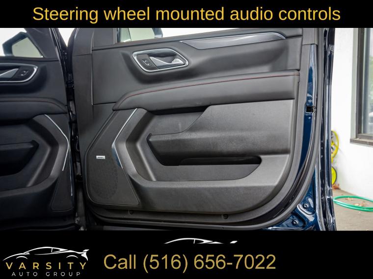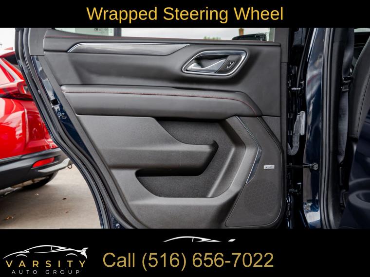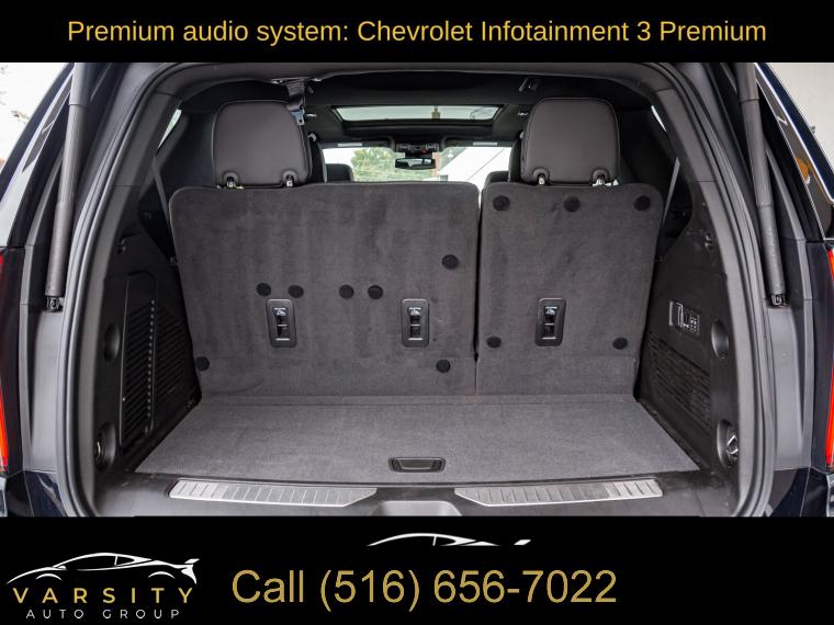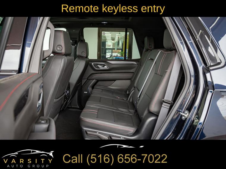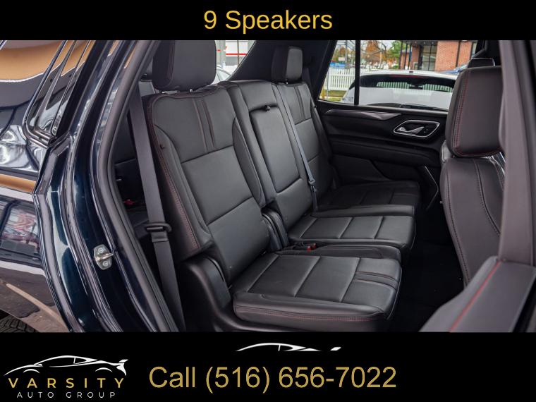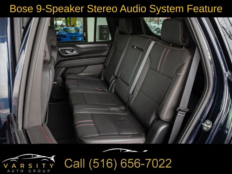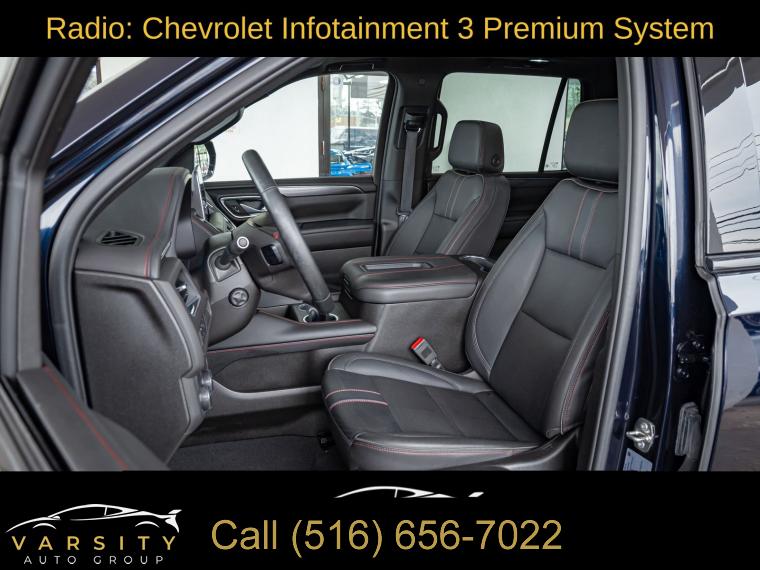 Navigation System, Driver Alert Package, Luxury Package, Preferred Equipment Group 1SP, 9 Speakers, AM/FM radio: SiriusXM with 360L, Bose 9-Speaker Stereo Audio System Feature, Premium audio system: Chevrolet Infotainment 3 Premium, Radio: Chevrolet Infotainment 3 Premium System, SiriusXM Radio w/360L, Air Conditioning, Automatic temperature control, Front dual zone A/C, Rear air conditioning, Rear window defroster, Enhanced Driver Information Center, Hands-Free Rear Power Programmable Liftgate, Memory seat, Memory Settings, Power driver seat, Power steering, Power windows, Remote keyless entry, Remote Start, Steering wheel mounted audio controls, Universal Home Remote, Four wheel independent suspension, Premium Smooth Ride Suspension, Speed-sensing steering, Traction control, Wrapped Steering Wheel, 4-Wheel Disc Brakes, ABS brakes, Dual front impact airbags, Dual front side impact airbags, Emergency communication system: OnStar and Chevrolet connected services capable, Enhanced Automatic Emergency Braking, Front anti-roll bar, Low tire pressure warning, Occupant sensing airbag, Overhead airbag, Rear anti-roll bar, Dual-Pane Power Panoramic Sunroof, Power Liftgate, Brake assist, Electronic Stability Control, Auto High-beam Headlights, Delay-off headlights, Fully automatic headlights, LED Daytime Running Lamps, Driver & Front Outboard Passenger Airbags, Panic alarm, Security system, Adaptive Cruise Control, Speed control, Bright Front & Rear Door Sill Plates, Bumpers: body-color, Heated door mirrors, Outside Heated Power-Adjustable Mirrors, Power door mirrors, Roof rack: rails only, Spoiler, 1st & 2nd Row Color-Keyed Carpeted Floor Mats, All-Weather Cargo Mat (LPO), Apple CarPlay/Android Auto, Auto-Dimming Inside Rear-View Mirror, Auto-dimming Rear-View mirror, Color-Keyed Carpeting Floor Covering, Compass, Driver door bin, Driver vanity mirror, Front reading lights, Garage door transmitter, HD Surround Vision, Heated Steering Wheel, Illuminated entry, Infotainment Display, Lane Change Alert w/Side Blind Zone Alert, Memory Settings for Driver, Outside temperature display, Overhead console, Passenger vanity mirror, Power Tilt & Telescopic Steering Column, Rear Cross Traffic Alert, Rear Pedestrian Alert, Rear reading lights, Rear seat center armrest, Tachometer, Telescoping steering wheel, Tilt steering wheel, Trip computer, Voltmeter, Wireless Charging, 10-Way Power Driver & Passenger Seat Adjusters, 2nd Row Pwr Release 60/40 Split-Folding Bench Seat, 3rd Row 60/40 Power-Folding Split-Bench Seat, 3rd row seats: split-bench, Floor Console w/Storage Area, Front Bucket Seats, Front Center Armrest, Front High-Back Reclining Bucket Seats, Heated 2nd Row Outboard Seats, Heated Driver & Front Passenger Seats, Heated front seats, Perforated Leather Seat Trim, Power passenger seat, Split folding rear seat, Passenger door bin, Alloy wheels, Not Equipped w/Wheel Locks (LPO), Set of 4 Wheel Locks (LPO), Wheels: 22" x 9" Bright Machined, Rain sensing wipers, Rear window wiper, Variably intermittent wipers, 3.23 Rear Axle Ratio, The Price you See, is the Price You Pay!!!, Chevrolet Tahoe RST, Midnight Blue Metallic, Jet Black/Victory Red interior, Clean CARFAX