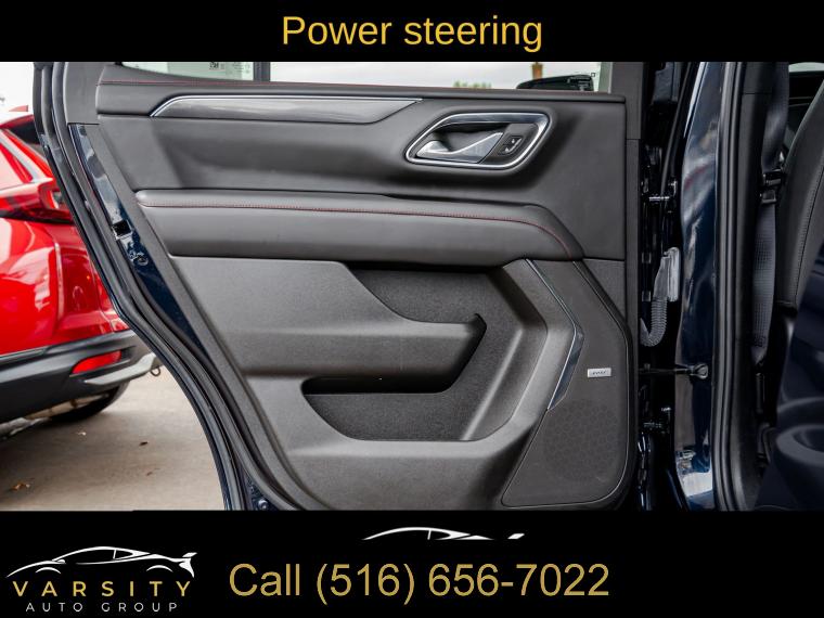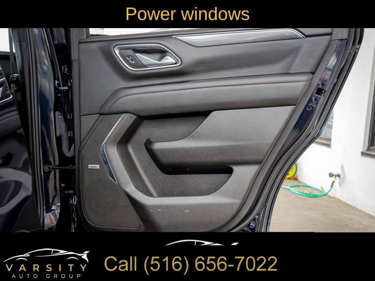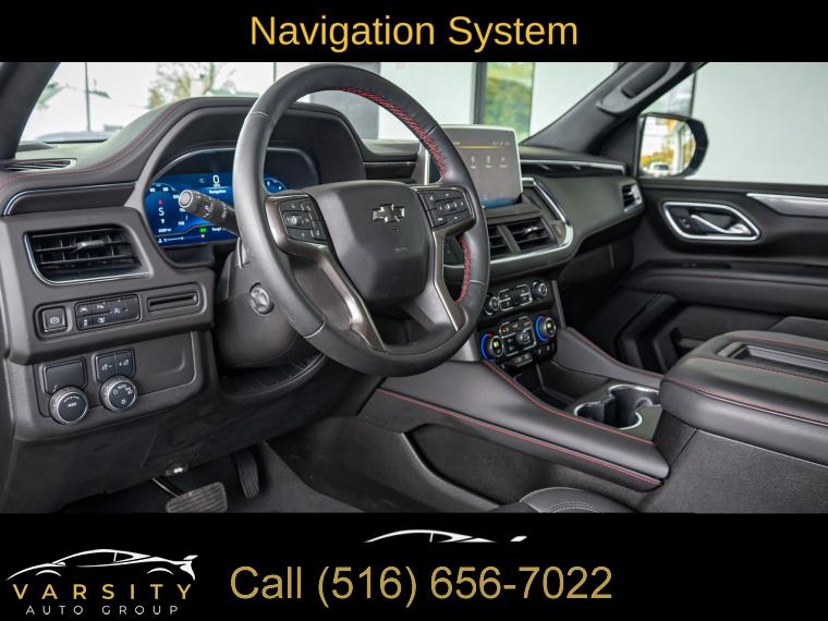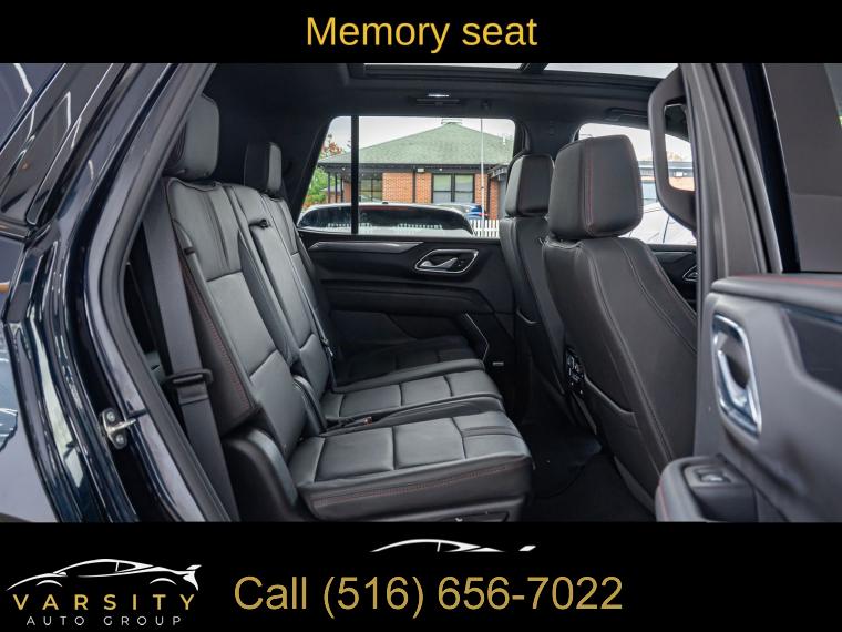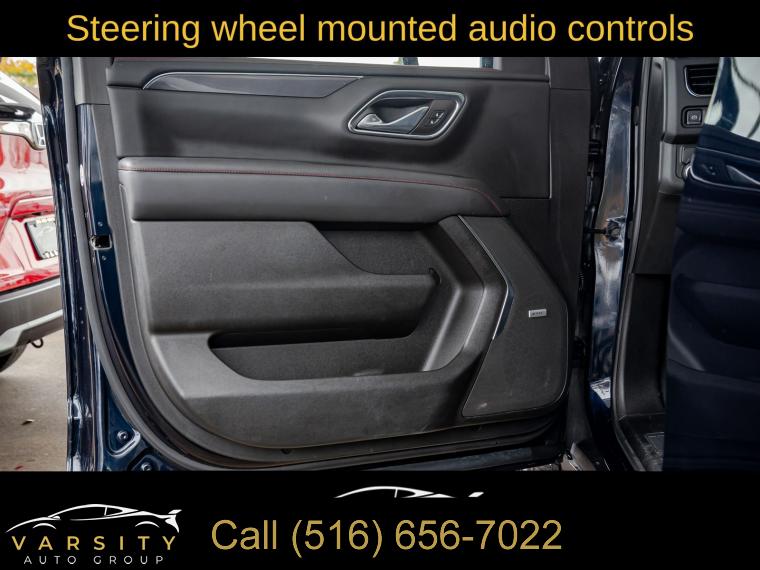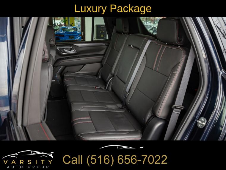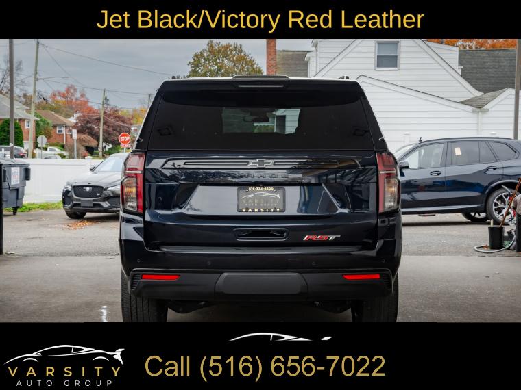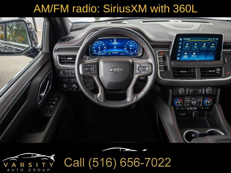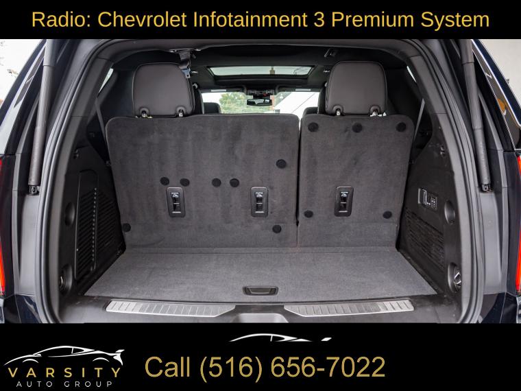 Navigation System, Driver Alert Package, Luxury Package, Preferred Equipment Group 1SP, 9 Speakers, AM/FM radio: SiriusXM with 360L, Bose 9-Speaker Stereo Audio System Feature, Premium audio system: Chevrolet Infotainment 3 Premium, Radio: Chevrolet Infotainment 3 Premium System, SiriusXM Radio w/360L, Air Conditioning, Automatic temperature control, Front dual zone A/C, Rear air conditioning, Rear window defroster, Enhanced Driver Information Center, Hands-Free Rear Power Programmable Liftgate, Memory seat, Memory Settings, Power driver seat, Power steering, Power windows, Remote keyless entry, Remote Start, Steering wheel mounted audio controls, Universal Home Remote, Four wheel independent suspension, Premium Smooth Ride Suspension, Speed-sensing steering, Traction control, Wrapped Steering Wheel, 4-Wheel Disc Brakes, ABS brakes, Dual front impact airbags, Dual front side impact airbags, Emergency communication system: OnStar and Chevrolet connected services capable, Enhanced Automatic Emergency Braking, Front anti-roll bar, Low tire pressure warning, Occupant sensing airbag, Overhead airbag, Rear anti-roll bar, Dual-Pane Power Panoramic Sunroof, Power Liftgate, Brake assist, Electronic Stability Control, Auto High-beam Headlights, Delay-off headlights, Fully automatic headlights, LED Daytime Running Lamps, Driver & Front Outboard Passenger Airbags, Panic alarm, Security system, Adaptive Cruise Control, Speed control, Bright Front & Rear Door Sill Plates, Bumpers: body-color, Heated door mirrors, Outside Heated Power-Adjustable Mirrors, Power door mirrors, Roof rack: rails only, Spoiler, 1st & 2nd Row Color-Keyed Carpeted Floor Mats, All-Weather Cargo Mat (LPO), Apple CarPlay/Android Auto, Auto-Dimming Inside Rear-View Mirror, Auto-dimming Rear-View mirror, Color-Keyed Carpeting Floor Covering, Compass, Driver door bin, Driver vanity mirror, Front reading lights, Garage door transmitter, HD Surround Vision, Heated Steering Wheel, Illuminated entry, Infotainment Display, Lane Change Alert w/Side Blind Zone Alert, Memory Settings for Driver, Outside temperature display, Overhead console, Passenger vanity mirror, Power Tilt & Telescopic Steering Column, Rear Cross Traffic Alert, Rear Pedestrian Alert, Rear reading lights, Rear seat center armrest, Tachometer, Telescoping steering wheel, Tilt steering wheel, Trip computer, Voltmeter, Wireless Charging, 10-Way Power Driver & Passenger Seat Adjusters, 2nd Row Pwr Release 60/40 Split-Folding Bench Seat, 3rd Row 60/40 Power-Folding Split-Bench Seat, 3rd row seats: split-bench, Floor Console w/Storage Area, Front Bucket Seats, Front Center Armrest, Front High-Back Reclining Bucket Seats, Heated 2nd Row Outboard Seats, Heated Driver & Front Passenger Seats, Heated front seats, Perforated Leather Seat Trim, Power passenger seat, Split folding rear seat, Passenger door bin, Alloy wheels, Not Equipped w/Wheel Locks (LPO), Set of 4 Wheel Locks (LPO), Wheels: 22" x 9" Bright Machined, Rain sensing wipers, Rear window wiper, Variably intermittent wipers, 3.23 Rear Axle Ratio, The Price you See, is the Price You Pay!!!, Chevrolet Tahoe RST, Midnight Blue Metallic, Jet Black/Victory Red Leather, Clean CARFAX