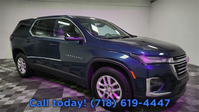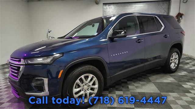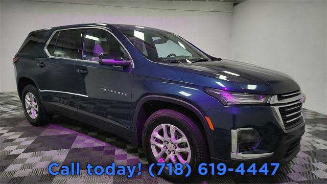 Clean CARFAX. 2023 Chevrolet Traverse LS 1st & 2nd Row All-Weather Floor Mats, 3rd Row All-Weather Floor Mats, 6-Speaker Audio System Feature, All-Weather Cargo Mat (LPO), Auto High-beam Headlights, Automatic temperature control, Exterior Parking Camera Rear, Front dual zone A/C, Fully automatic headlights, Interior Protection Package (LPO), Preferred Equipment Group 1LS, Radio: Chevrolet Infotainment System AM/FM Stereo, Rear air conditioning, Remote keyless entry, SiriusXM Radio, Steering wheel mounted audio controls.