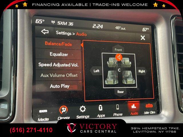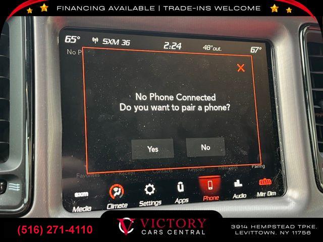 Quick Order Package 22H, 276 Watt Amplifier, 6 Speakers, AM/FM radio, GPS Antenna Input, Integrated Center Stack Radio, Media Hub (2 USB, AUX), Radio data system, Radio: Uconnect 4 w/7" Display, SiriusXM Radio Service, SiriusXM Satellite Radio, Air Conditioning, Automatic temperature control, Front dual zone A/C, Rear window defroster, Power driver seat, Power steering, Power windows, Remote keyless entry, Steering wheel mounted audio controls, Four wheel independent suspension, Speed-sensing steering, Traction control, 4-Wheel Disc Brakes, ABS brakes, Anti-whiplash front head restraints, Dual front impact airbags, Dual front side impact airbags, Front anti-roll bar, Low tire pressure warning, Overhead airbag, Rear anti-roll bar, Brake assist, Electronic Stability Control, ParkView Rear Back-Up Camera, Delay-off headlights, Fully automatic headlights, Panic alarm, Security system, Speed control, Body Color Exterior Mirrors, Bumpers: body-color, Exterior Mirrors w/Heating Element, Heated door mirrors, Power door mirrors, Spoiler, Apple CarPlay, Apple CarPlay/Android Auto, Auto-dimming Rear-View mirror, Driver door bin, Driver vanity mirror, For More Info, Call 800-643-2112, Front reading lights, Garage door transmitter, Google Android Auto, Houndstooth Cloth Performance Seats, Illuminated entry, Integrated Voice Command w/Bluetooth, Leather Shift Knob, Outside temperature display, Overhead console, Passenger vanity mirror, Rear reading lights, Rear seat center armrest, Sport steering wheel, Tachometer, Telescoping steering wheel, Tilt steering wheel, Trip computer, USB Host Flip, Front Bucket Seats, Front Center Armrest, Split folding rear seat, Passenger door bin, Alloy wheels, Rhombi 2-Pc Wheel Center Cap, Wheels: 20" x 8.0" Machined w/Granite Pocket, Variably intermittent wipers