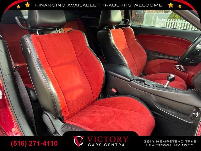 All pricing and details are believed to be accurate, but we do not warrant or guarantee such accuracy. The prices shown above may vary from region to region, as will incentives, and are subject to change. All cars are sold cosmetically As-Is. Vehicle information is based on standard equipment and may vary from vehicle to vehicle. Call or email for complete vehicle specific information. Price Does not include tax, title, license, destination charges, finance charges, or any reconditioning fees. Our special Internet pricing cannot be extended without a printed copy of the online pricing. The in-store price may exceed our special online pricing. Sorry but we cannot extend special pricing without a printed copy of the on-line pricing. To take advantage of our special Internet discounts, please print this page and present it to your salesperson at the BEGINNING of the transaction. Special Internet pricing posted on this ad/coupon/promotion is only available to customers who reference such pricing & present the ad at time of sale otherwise our store standard list price applies. Please be advised this ad is a Special Internet only ad. Prices can be modified and adjusted weekly, daily and sometimes hourly due to inquiries, bidding and website traffic on any Vehicles. All displayed inventory is subject to prior sale and all prices expire at midnight on the date displayed. Every reasonable effort has been made to ensure the accuracy of the information contained on this site, however absolute accuracy cannot be guaranteed. Advertised special excludes state tax, title, license, registration, NY state inspection, NYS tire recycling fee, finance charges, and dealer fees if applicable. Please verify any information in question with the dealership sales manager. This is easily done by calling us at (516) 271-4110 or by visiting us at the dealership. **With approved credit. Octane Red Pearlcoat 2023 Dodge Challenger R/T RWD Tremec 6-Speed Manual HEMI 5.7L V8 VVT