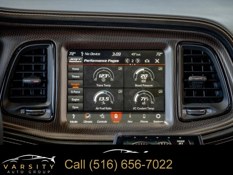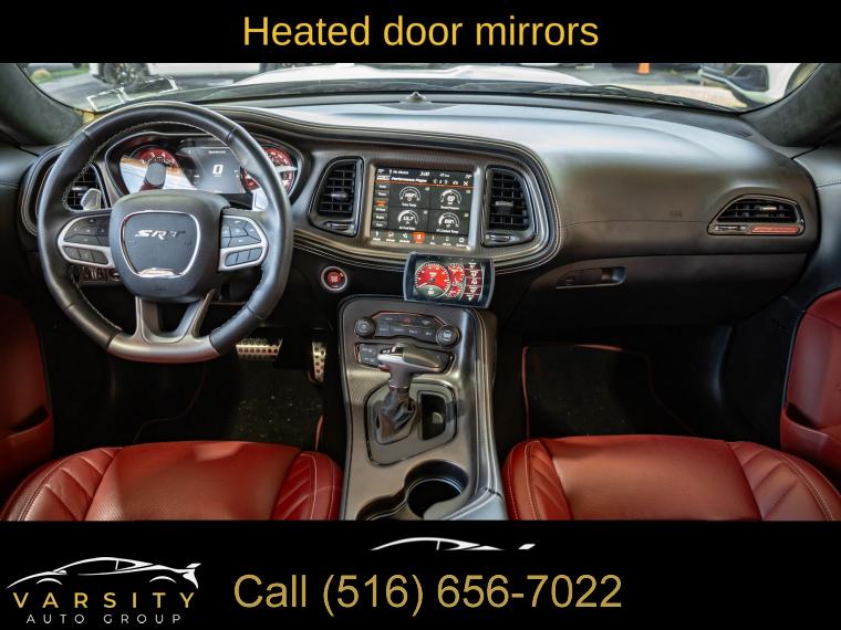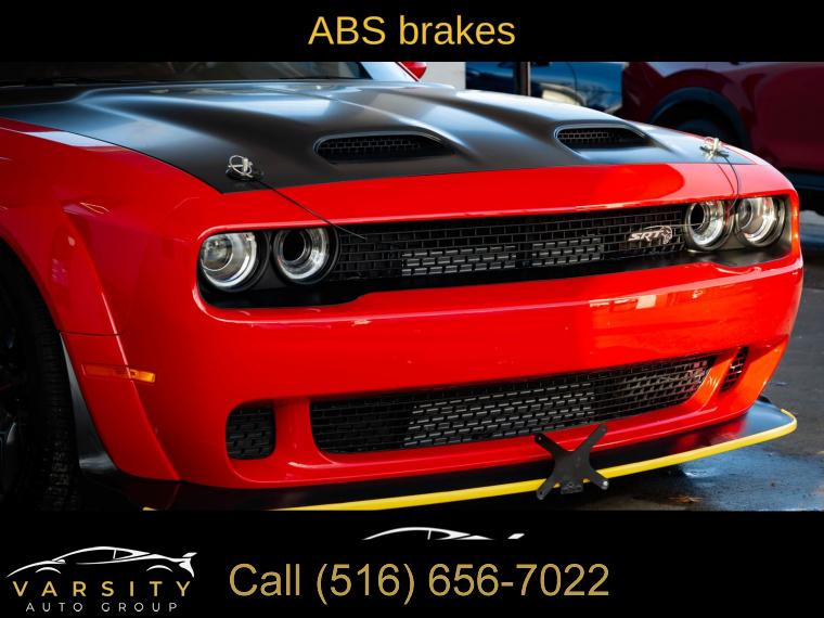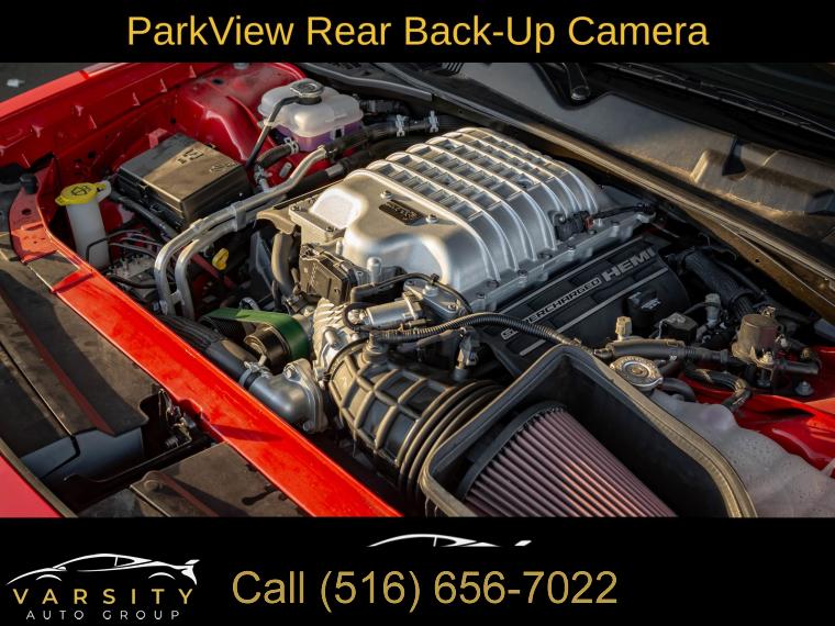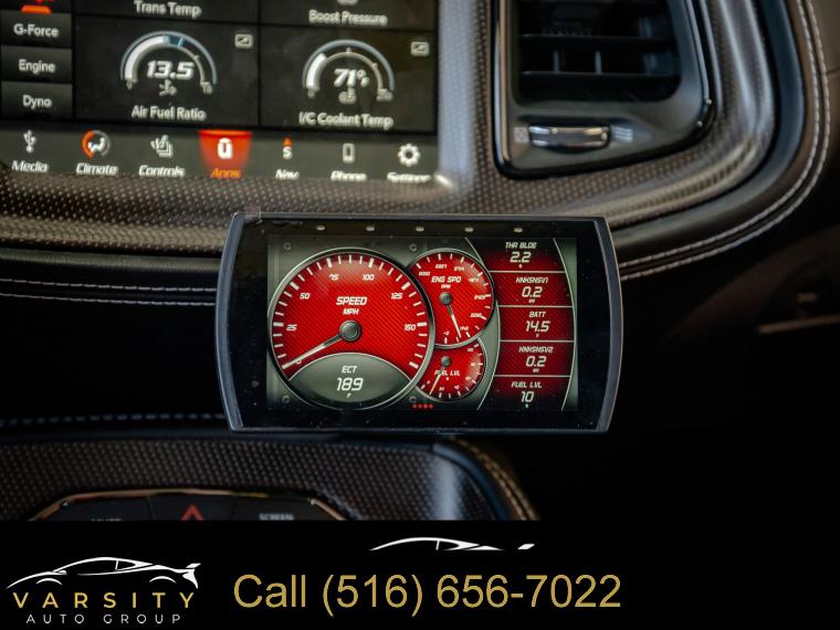6 Speakers, AM/FM radio: SiriusXM, GPS Antenna Input, HD Radio, Integrated Center Stack Radio, Media Hub (2 USB, AUX), Radio data system, Radio: Uconnect 4C w/8.4" Display, Shark Fin Antenna, SiriusXM Radio Service, SiriusXM Satellite Radio, Air Conditioning, Automatic temperature control, Front dual zone A/C, Rear window defroster, Power driver seat, Power steering, Power windows, Remote keyless entry, Steering wheel mounted audio controls, Adaptive suspension, Four wheel independent suspension, Speed-sensing steering, Traction control, 4-Wheel Disc Brakes, ABS brakes, Anti-whiplash front head restraints, Dual front impact airbags, Dual front side impact airbags, Emergency communication system: SiriusXM Guardian, Front anti-roll bar, Low tire pressure warning, Overhead airbag, Rear anti-roll bar, Brake assist, Electronic Stability Control, ParkView Rear Back-Up Camera, Delay-off headlights, Fully automatic headlights, Panic alarm, Security system, Speed control, Body Color Exterior Mirrors, Bumpers: body-color, Exterior Mirrors w/Heating Element, Heated door mirrors, Power door mirrors, Spoiler, 1-Yr SiriusXM Guardian Trial, 4G LTE Wi-Fi Hot Spot, 8.4" Touchscreen Display, Apple CarPlay, Apple CarPlay/Android Auto, Auto-dimming Rear-View mirror, Compass, Compass Gauge, Driver door bin, Driver vanity mirror, For Details, Visit DriveUconnect.com, For More Info, Call 800-643-2112, Front reading lights, Garage door transmitter, Google Android Auto, Heated Steering Wheel, Heated steering wheel, Illuminated entry, Integrated Voice Command w/Bluetooth, Leather Shift Knob, Outside temperature display, Overhead console, Passenger vanity mirror, Rear reading lights, Rear seat center armrest, Sport steering wheel, SRT Hellcat Logo Houndstooth Seats, Tachometer, Telescoping steering wheel, Tilt steering wheel, Trip computer, USB Host Flip, Front Bucket Seats, Front Center Armrest, Heated Front Seats, Heated front seats, Split folding rear seat, Passenger door bin, Alloy wheels, Wheels: 20" x 9.5" Low Gloss Black Drag, Variably intermittent wipers, SRT Hellcat Redeye Widebody jailbreak