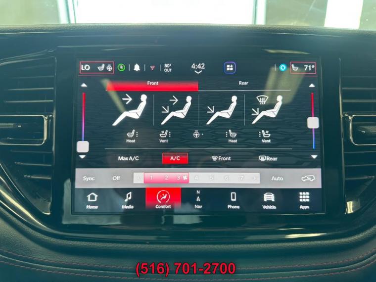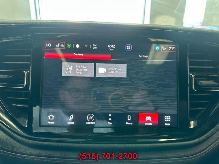 ABS, 4-Wheel Disc Brakes, 8-Speed A/T, A/C, A/T, 3rd Row Seat, All Wheel Drive, Aluminum Wheels, AM/FM Stereo, Transmission w/Dual Shift Mode, Automatic Headlights, Auxiliary Audio Input, Back-Up Camera, Blind Spot Monitor, Brake Assist, Child Safety Locks, Climate Control, Temporary Spare Tire, Cruise Control, Daytime Running Lights, Driver Air Bag, Driver Vanity Mirror, Multi-Zone A/C, Auto-Dimming Rearview Mirror, Stability Control, Floor Mats, Gasoline Fuel, HD Radio, Heated Front Seat(s), Heated Mirrors, Heated Steering Wheel, Intermittent Wipers, Keyless Entry, Keyless Start, Knee Air Bag, Leather Steering Wheel, LED Headlights, MP3 Player, Navigation System, Pass-Through Rear Seat, Passenger Air Bag, Passenger Air Bag Sensor, Passenger Vanity Mirror, Power Door Locks, Power Liftgate, Power Steering, Power Windows, Privacy Glass, Rear A/C, Rear Collision Mitigation, Rear Defrost, Rear Head Air Bag, Rear Parking Aid, Rear Spoiler, Remote Trunk Release, Requires Subscription, Satellite Radio, Front Side Air Bag, Front Head Air Bag, Smart Device Integration, Steering Wheel Audio Controls, Tire Pressure Monitor, Tires - Front Performance, Tires - Rear Performance, Traction Control, Trip Computer, Universal Garage Door Opener, V6 Cylinder Engine, Variable Speed Intermittent Wipers, Immobilizer, Bluetooth Connection, Auto On/Off Projector Beam Led Low/High Beam Daytime Running Headlamps w/Delay-Off, Black Grille, Black Side Windows Trim, Body-Colored Door Handles, Body-Colored Front Bumper, Body-Colored Rear Step Bumper, Body-Colored Wheel Well Trim, Clearcoat Paint, Compact Spare Tire Stored Underbody w/Crankdown, Deep Tinted Glass, Exterior Mirrors w/Heating Element, Fixed Rear Window w/Fixed Interval Wiper and Defroster, Galvanized Steel/Aluminum Panels, Gloss Black Exterior Mirrors, Laminated Glass, LED Brakelights, Lip Spoiler, Perimeter/Approach Lights, Power Liftgate Rear Cargo Access, Speed Sensitive Variable Intermittent Wipers, Steel Spare Wheel, Tailgate/Rear Door Lock Included w/Power Door Locks, Tires: 265/50R20 BSW AS LRR, Wheels: 20" x 8.0" Fine Silver, 2 Seatback Storage Pockets, 3 12V DC Power Outlets, 60-40 Folding Split-Bench Front Facing Tumble Forward Rear Seat, Air Filtration, Apple CarPlay, Armrests w/Storage and Rear Center Armrest, Cargo Area Concealed Storage, Cargo Space Lights, Carpet Floor Trim, Compass, Cruise Control w/Steering Wheel Controls, Day-Night Auto-Dimming Rearview Mirror, Delayed Accessory Power, Digital/Analog Appearance, Driver / Passenger And Rear Door Bins, Driver And Passenger Heated-Cushion, Driver And Passenger Heated-Seatback, Driver And Passenger Visor Vanity Mirrors, Driver Foot Rest, Driver Information Center, Driver Seat, Dual Zone Front Automatic Air Conditioning, Fade-To-Off Interior Lighting, Fixed 50-50 Split-Bench 3rd Row Seat Front, Manual Fold Into Floor, 2 Power and Adjustable Head Restraints, FOB Controls -inc: Cargo Access and Windows, Front And Rear Map Lights, Full Carpet Floor Covering -inc: Carpet Front And Rear Floor Mats, Full Cloth Headliner, Full Floor Console w/Covered Storage, Mini Overhead Console w/Storage and 3 12V DC Power Outlets, Garage Door Transmitter, Gauges -inc: Speedometer, Odometer, Voltmeter, Oil Pressure, Engine Coolant Temp, Tachometer, Oil Temperature, Transmission Fluid Temp, Trip Odometer and Trip Computer, Google Android Auto, HVAC -inc: Auxiliary Rear Heater, Headliner/Pillar Ducts and Console Ducts, Illuminated Front Cupholder, Illuminated Locking Glove Box, Interior Trim -inc: Leatherette/Metal-Look Instrument Panel Insert, Metal-Look Door Panel Insert, Leather Console Insert and Chrome Interior Accents, Manual Anti-Whiplash w/Tilt Front Head Restraints and Fixed Rear Head Restraints, Outside Temp Gauge, Passenger Seat -inc: Fold Flat, Power 1st Row Windows w/Driver And Passenger 1-Touch Up/Down, Power Door Locks w/Autolock Feature, Power Rear Windows and Fixed 3rd Row Windows, Proximity Key For Doors And Push Button Start, Rear Cupholder, Rear HVAC w/Separate Controls, Red Accent Stitching, Redundant Digital Speedometer, Remote Keyless Entry w/Integrated Key Transmitter, 2 Door Curb/Courtesy, Illuminated Entry and Panic Button, Remote Releases -Inc: Power Cargo Access, Sentry Key Immobilizer, Sport Heated Leather/Metal-Look Steering Wheel, Trip Computer, Trunk/Hatch Auto-Latch, Urethane Gear Shifter Material, USB Host Flip, Valet Function, 1450# Maximum Payload, 24.6 Gal. Fuel Tank, 3.45 Rear Axle Ratio, 4-Wheel Disc Brakes w/4-Wheel ABS, Front And Rear Vented Discs, Brake Assist and Hill Hold Control, 50 State Emissions, 650CCA Maintenance-Free Battery w/Run Down Protection, Dual Stainless Steel Exhaust w/Chrome Tailpipe Finisher, Electric Power-Assist Speed-Sensing Steering, Engine Oil Cooler, Engine: 3.6L V6 24V VVT UPG I w/ESS, Front And Rear Anti-Roll Bars, Full-Time All-Wheel, Gas-Pressurized Front Shock Absorbers and Brand Name Rear Shock Absorbers, GVWR: 6, 500 lbs, Multi-Link Rear Suspension w/Coil Springs, Permanent Locking Hubs, Short And Long Arm Front Suspension w/Coil Springs, Towing Equipment -inc: Trailer Sway Control, Transmission w/Driver Selectable Mode and Sequential Shift Control w/Steering Wheel Controls, Transmission: 8-Speed Automatic (850RE), ABS And Driveline Traction Control, Airbag Occupancy Sensor, Blind Spot Detection Blind Spot, Collision Mitigation-Rear, Curtain 1st, 2nd And 3rd Row Airbags, Driver Knee Airbag, Dual Stage Driver And Passenger Front Airbags, Dual Stage Driver And Passenger Seat-Mounted Side Airbags, Electronic Stability Control (ESC) And Roll Stability Control (RSC), Outboard Front Lap And Shoulder Safety Belts -inc: Rear Center 3 Point, Height Adjusters and Pretensioners, ParkSense with Stop Rear Parking Sensors, ParkView Back-Up Camera, Rear Child Safety Locks, Side Impact Beams, Tire Specific Low Tire Pressure Warning