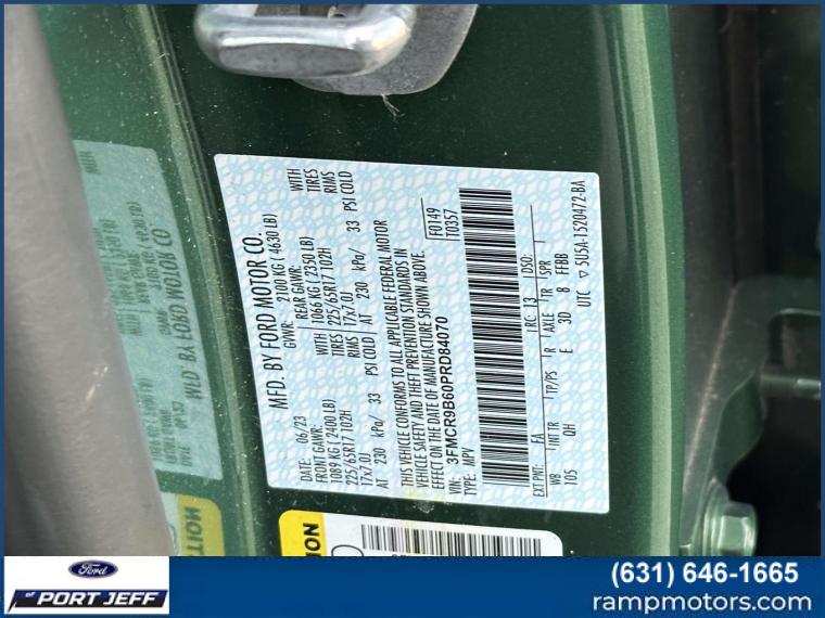 For more information on this 2023 Ford Bronco Sport, please call Ford of Port Jeff at (631) 646-1665 or with the contact form on this page. This vehicle's vin number is 3FMCR9B60PRD84070 and is recorded as being in stock at Ford of Port Jeff at 4869 Nesconset Hwy in Port Jefferson Station. See all cars from this dealership.