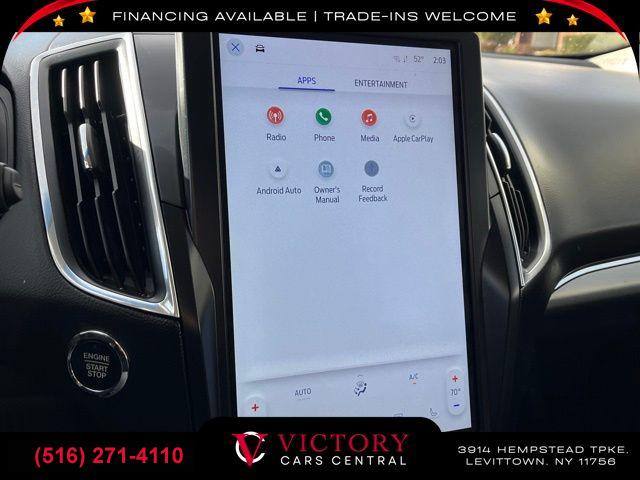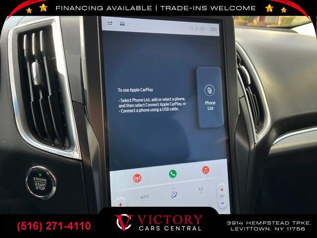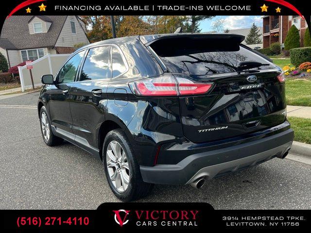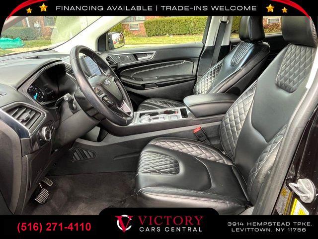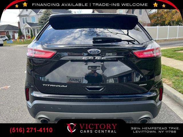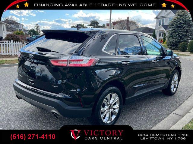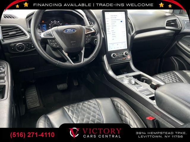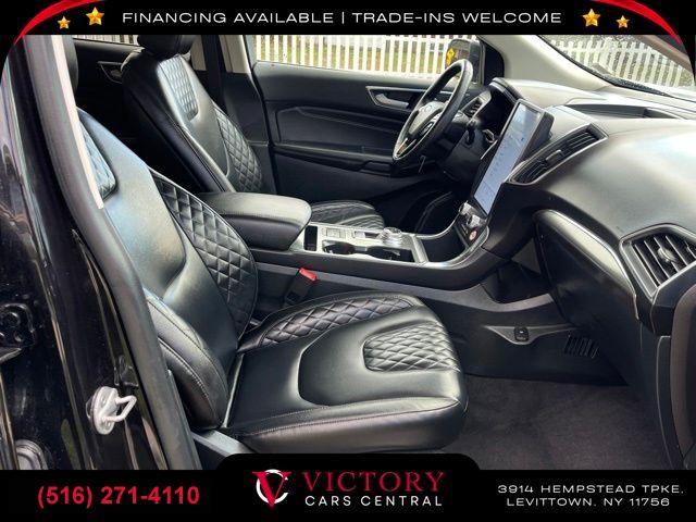 All pricing and details are believed to be accurate, but we do not warrant or guarantee such accuracy. The prices shown above may vary from region to region, as will incentives, and are subject to change. All cars are sold cosmetically As-Is. Vehicle information is based on standard equipment and may vary from vehicle to vehicle. Call or email for complete vehicle specific information. Price Does not include tax, title, license, destination charges, finance charges, or any reconditioning fees. Our special Internet pricing cannot be extended without a printed copy of the online pricing. The in-store price may exceed our special online pricing. Sorry but we cannot extend special pricing without a printed copy of the on-line pricing. To take advantage of our special Internet discounts, please print this page and present it to your salesperson at the BEGINNING of the transaction. Special Internet pricing posted on this ad/coupon/promotion is only available to customers who reference such pricing & present the ad at time of sale otherwise our store standard list price applies. Please be advised this ad is a Special Internet only ad. Prices can be modified and adjusted weekly, daily and sometimes hourly due to inquiries, bidding and website traffic on any Vehicles. All displayed inventory is subject to prior sale and all prices expire at midnight on the date displayed. Every reasonable effort has been made to ensure the accuracy of the information contained on this site, however absolute accuracy cannot be guaranteed. Advertised special excludes state tax, title, license, registration, NY state inspection, NYS tire recycling fee, finance charges, and dealer fees if applicable. Please verify any information in question with the dealership sales manager. This is easily done by calling us at (516) 271-4110 or by visiting us at the dealership. **With approved credit. Black 2023 Ford Edge Titanium AWD 8-Speed Automatic EcoBoost 2.0L I4 GTDi DOHC Turbocharged VCT AWD.