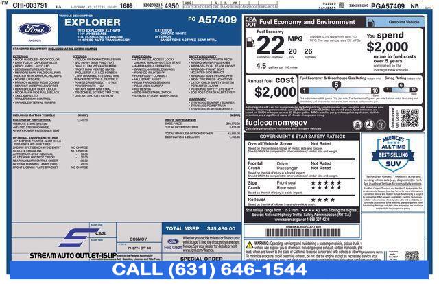 2023 Ford Explorer XLT Oxford White 10-Speed Automatic * NYS INSPECTION INCLUDED *, * FULL INTERIOR / EXTERIOR DETAIL *, * BLUETOOTH *, * LIMITED NYS LEMON LAW WARRANTY INCLUDED *, *FRESH OIL CHANGE *, * 150 MULTI POINT INSPECTION *, 4WD. CARFAX One-Owner. 20/27 City/Highway MPG