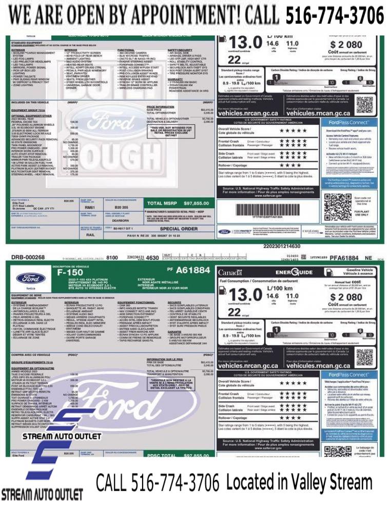 For more information on this 2023 Ford F-150, please call Stream Auto Outlet Valley Stream at (516) 774-3706 or with the contact form on this page. This vehicle's vin number is 1FTFW1E89PFA61884 and is recorded as being in stock at Stream Auto Outlet Valley Stream at 324 W Merrick Rd in Valley Stream. See all cars from this dealership.
