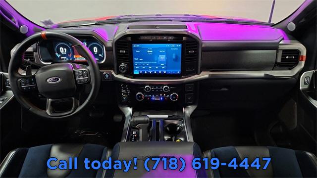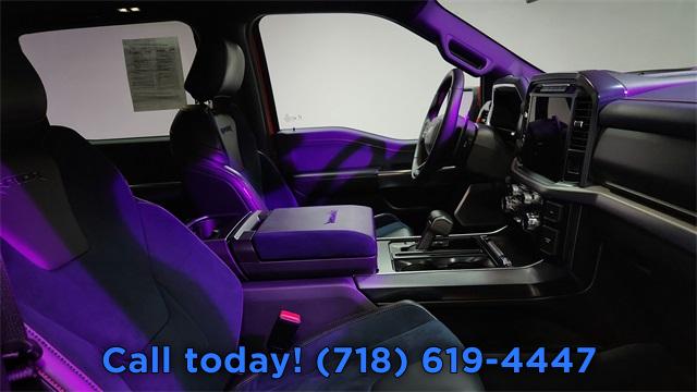 Navigation system: Connected Navigation, Blue Interior Package, Equipment Group 801A Standard, GVWR: 7, 300 lbs Payload Package, Moonroof & Tailgate, Raptor 37 Performance Package, 18 Speakers, AM/FM radio: SiriusXM with 360L, Radio data system, Radio: B&O Unleashed Sound System by Bang & Olufsen, Air Conditioning, Automatic temperature control, Front dual zone A/C, Rear window defroster, Memory seat, Pedal memory, Power driver seat, Power steering, Power windows, Pro Power Onboard - 2KW, Remote keyless entry, Steering wheel memory, Steering wheel mounted audio controls, Adaptive suspension, Speed-sensing steering, Sport Tuned Shock Absorbers, Steering Wheel Heat Removal (DISC), Traction control, 4-Wheel Disc Brakes, ABS brakes, Dual front impact airbags, Dual front side impact airbags, Emergency communication system, Front anti-roll bar, Front wheel independent suspension, Low tire pressure warning, Occupant sensing airbag, Overhead airbag, Twin Panel Moonroof, Tough Bed Spray-In Bedliner, Power Tailgate, Brake assist, Electronic Stability Control, Lane Departure Warning System, Exterior Parking Camera Rear, Auto High-beam Headlights, Delay-off headlights, Front fog lights, Fully automatic headlights, Inclination/Intrusion Sensor Removal, Panic alarm, Security system, Speed control, Auto Start-Stop Removal (DISC), Auto-dimming door mirrors, Bumpers: body-color, Front License Plate Bracket, Heated door mirrors, Power door mirrors, Raptor 37 Graphics, Rear step bumper, Turn signal indicator mirrors, Adjustable pedals, Auto tilt-away steering wheel, Auto-dimming Rear-View mirror, Compass, Driver door bin, Driver vanity mirror, Front reading lights, Garage door transmitter, Heated steering wheel, Illuminated entry, Leather Trim Seats w/Heated 2nd Row, Outside temperature display, Overhead console, Passenger vanity mirror, Rear reading lights, Recaro Unique Blue Accent 40/Console/40 Front Seats, SYNC 4 w/Enhanced Voice Recognition, Tachometer, Telescoping steering wheel, Tilt steering wheel, Trip computer, Front Bucket Seats, Front Center Armrest, Heated front seats, Heated rear seats, Partitioned Lockable Fold-Flat Storage, Power passenger seat, Split folding rear seat, Ventilated front seats, Hard Folding Tonneau Box Cover (Dealer Installed), Passenger door bin, 17" Cast Aluminum Wheels, Alloy wheels, Wheels: Unique 17" Forged Aluminum Bead-Lock Capable, Rain sensing wipers, Variably intermittent wipers, Electronic Locking w/4.10 Axle Ratio
