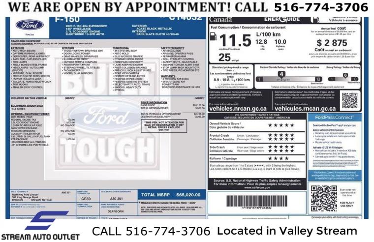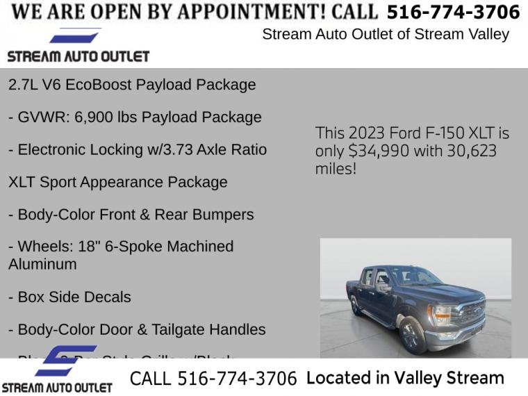 For more information on this 2023 Ford F-150, please call Stream Auto Outlet Valley Stream at (516) 774-3706 or with the contact form on this page. This vehicle's vin number is 1FTEW1EPXPFC14632 and is recorded as being in stock at Stream Auto Outlet Valley Stream at 324 W Merrick Rd in Valley Stream. See all cars from this dealership.