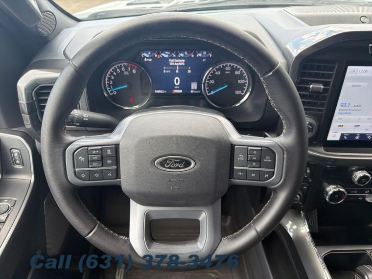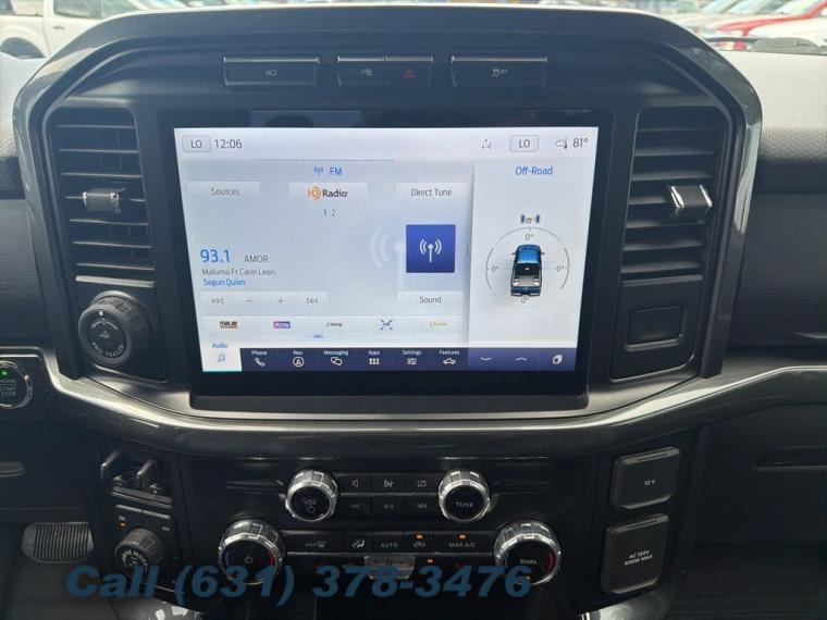 Bed Utility Package, Equipment Group 302A High, Ford Co-Pilot360 Assist 2.0, Trailer Tow Package, XLT Black Appearance Package, XLT Sport Appearance Package, 6 Speakers, AM/FM radio, Radio data system, Radio: AM/FM SiriusXM w/360L, Radio: AM/FM Stereo w/6 Speakers, Radio: B&O Sound System by Bang & Olufsen, Air Conditioning, Dual Zone Electronic Automatic Temperature Control, Rear window defroster, Intelligent Access w/Push Button Start, Onboard 400W Outlet, Power steering, Power windows, Remote keyless entry, Steering wheel mounted audio controls, Speed-sensing steering, Traction control, Wrapped Steering Wheel, 4-Wheel Disc Brakes, ABS brakes, Body-Color Front & Rear Bumpers, Dual front impact airbags, Dual front side impact airbags, Emergency communication system: SYNC 4 911 Assist, Front anti-roll bar, Front wheel independent suspension, Low tire pressure warning, Occupant sensing airbag, Overhead airbag, Remote Start System, Remote Start System w/Remote Tailgate Release, SecuriCode Drivers Side Keyless-Entry Keypad, Tough Bed Spray-In Bedliner, Brake assist, Electronic Stability Control, Exterior Parking Camera Rear, Auto High-beam Headlights, Delay-off headlights, Front fog lights, Fully automatic headlights, Panic alarm, Security system, Intelligent Adaptive Cruise Control w/Stop & Go, Speed control, Auto Start-Stop Removal (DISC), Engine Block Heater, Accent-Color Step Bars, Black 2-Bar Style Grille w/Black Surround/Accents, Black 6" Angular Step Bars, Black Exterior Badging, Body-Color Door & Tailgate Handles, Box Side Decals, BoxLink, Bumpers: chrome, Front License Plate Bracket, Heated door mirrors, LED Box Lighting, LED Reflector Headlamps, LED Sideview Mirror Spotlights, Matte Black Tailgate F-150 Decal, Power door mirrors, Power Glass Heated Sideview Mirrors, Rear step bumper, Tailgate Step w/Tailgate Work Surface, Unique Hood & Grille w/Black Accent, Wheel Well Liner, Zone Lighting, 8" Productivity Screen in Instrument Cluster, Auto-Dimming Rear-View Mirror, Center High-Mounted Stop Lamp CHMSL Camera Removal, Compass, Connected Built-In Navigation, Dark Interior Appliques, Driver door bin, Driver vanity mirror, Evasive Steering Assist, Front reading lights, Illuminated entry, Interior Work Surface, Intersection Assist, Outside temperature display, Overhead console, Passenger vanity mirror, Rear reading lights, Speed Sign Recognition, SYNC 4, SYNC 4 w/Enhanced Voice Recognition, Tachometer, Telescoping steering wheel, Tilt steering wheel, Tray Style Floor Liner (47W), Trip computer, Unique Sport Cloth 40/Console/40 Front-Seats, Voltmeter, 10-Way Power Driver & Passenger Seats, Cloth 40/20/40 Front Seat, Heated Front Seats, Rear Under-Seat Storage, Split folding rear seat, Extended Range 36 Gallon Fuel Tank, Front Center Armrest w/Storage, Passenger door bin, 360 Degree Camera, Class IV Trailer Hitch Receiver, Integrated Trailer Brake Controller, Pro Trailer Backup Assist & Pro Trailer Hitch Assist, Alloy wheels, Wheels: 17" Silver Painted Aluminum, Wheels: 18" 6-Spoke Machined Aluminum, Wheels: 20" Gloss Black Painted Aluminum, Power-Sliding Rear Window, Variably intermittent wipers