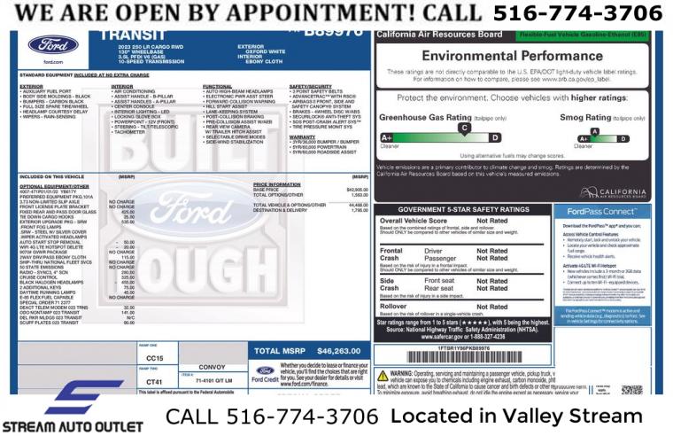 For more information on this 2023 Ford Transit, please call Stream Auto Outlet Valley Stream at (516) 774-3706 or with the contact form on this page. This vehicle's vin number is 1FTBR1Y86PKB89976 and is recorded as being in stock at Stream Auto Outlet Valley Stream at 324 W Merrick Rd in Valley Stream. See all cars from this dealership.