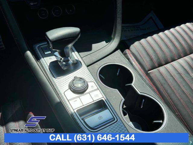 Navigation System, Option Group 02, Sport Prestige Package, 6 Speakers, AM/FM radio: SiriusXM, Radio: AM/FM/SiriusXM/HD Audio System, Radio: AM/FM/SiriusXM/HD Lexicon Prem Audio System, Air Conditioning, Automatic temperature control, Front dual zone A/C, Rear window defroster, Power driver seat, Power steering, Power windows, Remote keyless entry, Steering wheel mounted audio controls, Four wheel independent suspension, Traction control, 4-Wheel Disc Brakes, ABS brakes, Anti-whiplash front head restraints, Dual front impact airbags, Dual front side impact airbags, Emergency communication system: Genesis Connected Services, Front anti-roll bar, Knee airbag, Low tire pressure warning, Occupant sensing airbag, Overhead airbag, Rear anti-roll bar, Wide Sunroof, Brake assist, Electronic Stability Control, Exterior Parking Camera Rear, Auto High-beam Headlights, Delay-off headlights, Fully automatic headlights, Panic alarm, Security system, Speed control, Acoustic Front Door Glass, Bumpers: body-color, Dark Chrome Grille & Daylight Opening Trim, Heated door mirrors, Power door mirrors, Power Folding ECM Outside Mirrors, Turn signal indicator mirrors, Alloy Pedals, Android Auto & Apple CarPlay, Auto-dimming Rear-View mirror, Driver door bin, Driver vanity mirror, Forward & Reverse Parking Distance Warning, Front reading lights, Garage door transmitter: HomeLink, Heated Multi-Adjustable Front Bucket Seats, Heated steering wheel, Illuminated entry, Integrated Memory System (IMS), Outside temperature display, Overhead console, Passenger vanity mirror, Power Telescoping Steering Wheel, Rear reading lights, Rear seat center armrest, Sport Aluminum Trim, Tachometer, Telescoping steering wheel, Trip computer, Wireless Device Charging, 4-Way Power Lumbar Front Passenger Seat, Front Bucket Seats, Front Center Armrest, Front Passenger Seat Walk-In Device, Heated front seats, Leather Seating Surfaces, Leatherette Seating Surfaces, Power passenger seat, Split folding rear seat, Ventilated Front Seats, Passenger door bin, Alloy wheels, Wheels: 19" x 8.0J Fr & 19" x 8.5J Rr Alloy, Wheels: 19" x 8.0J Fr & 19" x 8.5J Rr Sport Alloy, Rain-Sensing Wipers, Speed-Sensitive Wipers, Variably intermittent wipers