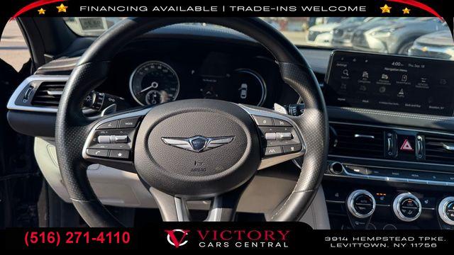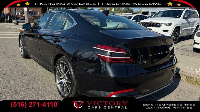 All pricing and details are believed to be accurate, but we do not warrant or guarantee such accuracy. The prices shown above may vary from region to region, as will incentives, and are subject to change. All cars are sold cosmetically As-Is. Vehicle information is based on standard equipment and may vary from vehicle to vehicle. Call or email for complete vehicle specific information. Price Does not include tax, title, license, destination charges, finance charges, or any reconditioning fees. Our special Internet pricing cannot be extended without a printed copy of the online pricing. The in-store price may exceed our special online pricing. Sorry but we cannot extend special pricing without a printed copy of the on-line pricing. To take advantage of our special Internet discounts, please print this page and present it to your salesperson at the BEGINNING of the transaction. Special Internet pricing posted on this ad/coupon/promotion is only available to customers who reference such pricing & present the ad at time of sale otherwise our store standard list price applies. Please be advised this ad is a Special Internet only ad. Prices can be modified and adjusted weekly, daily and sometimes hourly due to inquiries, bidding and website traffic on any Vehicles. All displayed inventory is subject to prior sale and all prices expire at midnight on the date displayed. Every reasonable effort has been made to ensure the accuracy of the information contained on this site, however absolute accuracy cannot be guaranteed. Advertised special excludes state tax, title, license, registration, NY state inspection, NYS tire recycling fee, finance charges, and dealer fees if applicable. Please verify any information in question with the dealership sales manager. This is easily done by calling us at (516) 271-4110 or by visiting us at the dealership. **With approved credit. Vik Black 2023 Genesis G70 2.0T AWD 8-Speed Automatic with SHIFTRONIC I4