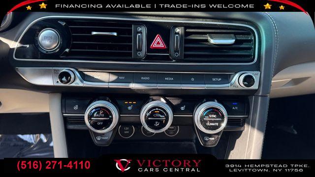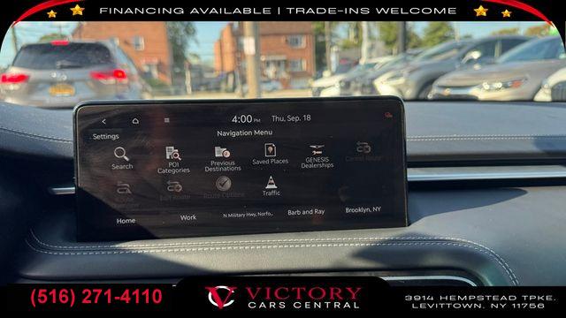 Navigation System, Option Group 01, 6 Speakers, AM/FM radio: SiriusXM, Radio: AM/FM/SiriusXM/HD Audio System, Air Conditioning, Automatic temperature control, Front dual zone A/C, Rear window defroster, Power driver seat, Power steering, Power windows, Remote keyless entry, Steering wheel mounted audio controls, Four wheel independent suspension, Traction control, 4-Wheel Disc Brakes, ABS brakes, Anti-whiplash front head restraints, Dual front impact airbags, Dual front side impact airbags, Emergency communication system: Genesis Connected Services, Front anti-roll bar, Knee airbag, Low tire pressure warning, Occupant sensing airbag, Overhead airbag, Rear anti-roll bar, Brake assist, Electronic Stability Control, Exterior Parking Camera Rear, Auto High-beam Headlights, Delay-off headlights, Fully automatic headlights, Panic alarm, Security system, Speed control, Bumpers: body-color, Heated door mirrors, Power door mirrors, Turn signal indicator mirrors, Android Auto & Apple CarPlay, Auto-dimming Rear-View mirror, Driver door bin, Driver vanity mirror, Front reading lights, Garage door transmitter: HomeLink, Heated Multi-Adjustable Front Bucket Seats, Heated steering wheel, Illuminated entry, Outside temperature display, Overhead console, Passenger vanity mirror, Rear reading lights, Rear seat center armrest, Tachometer, Telescoping steering wheel, Trip computer, Front Bucket Seats, Front Center Armrest, Heated front seats, Leatherette Seating Surfaces, Power passenger seat, Split folding rear seat, Passenger door bin, Alloy wheels, Wheels: 19" x 8.0J Fr & 19" x 8.5J Rr Alloy, Speed-Sensitive Wipers, Variably intermittent wipers