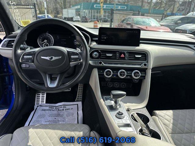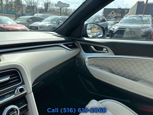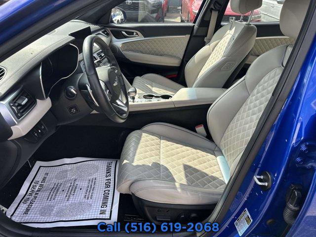 PREMIUM FIRST AID KIT, OBSIDIAN BLK/SANDSTORM GY NAPPA LEATHER SEATING SURFACES, WHEEL LOCKS, MALLORCA BLUE, SPORT PRESTIGE PACKAGE -inc: Option Group 04 Brembo Braking System Power Trunk Electronically Controlled Suspension Heads-Up Display (HUD) Microfiber Suede Headliner & Pillars Surround View Monitor w/Blind Spot View Monitor Limited-Slip Differential Option Group 03 Variable Exhaust Valve System Sport Aluminum Trim Dark Chrome Grille & Daylight Opening Trim Forward & Reverse Parking Distance Warning Acoustic Front Door Glass Radio: AM/FM/SiriusXM/HD Lexicon Prem Audio System QuantumLogic surround sound 15 high efficiency speakers including 2 subwoofers Lexicon 11-channel digital external amplifier speed-sensing 5th generation navigation system w/10.25 touchscreen dynamic voice recognition connected routing over the air updates Android Auto and Apple CarPlay Bluetooth hands-free phone and audio streaming system and 4 USB ports Genesis Digital Key Wheels: 19 x 8.0J Fr & 19 x 8.5J Rr Sport Alloy Power Driver Seat Bolster & Cushion Extension Alloy Pedals Ven, BUMPER APPLIQUE, MUDGUARDS, Turbocharged, All Wheel Drive, Power Steering, ABS, 4-Wheel Disc Brakes, Brake Assist, Brake Actuated Limited Slip Differential, Aluminum Wheels, Tires - Front Performance, Tires - Rear Performance, Temporary Spare Tire, Heated Mirrors, Power Mirror(s), Integrated Turn Signal Mirrors, Power Folding Mirrors, Rear Defrost, Intermittent Wipers, Variable Speed Intermittent Wipers, Rain Sensing Wipers, Daytime Running Lights, Automatic Headlights, Headlights-Auto-Leveling, LED Headlights, Automatic Highbeams, AM/FM Stereo, Navigation System, Satellite Radio, MP3 Capability, Steering Wheel Audio Controls, Bluetooth Connection, Telematics, Auxiliary Audio Input, HD Radio, Smart Device Integration, Requires Subscription, MP3 Capability, Bluetooth Connection, Power Driver Seat, Power Passenger Seat, Bucket Seats, Heated Front Seat(s), Driver Adjustable Lumbar, Passenger Adjustable Lumbar, Seat Memory, Pass-Through Rear Seat, Rear Bench Seat, Adjustable Steering Wheel, Trip Computer, Power Windows, Telematics, Requires Subscription, Leather Steering Wheel, Heated Steering Wheel, Keyless Entry, Power Door Locks, Keyless Start, Keyless Entry, Power Door Locks, Remote Trunk Release, Hands-Free Liftgate, Universal Garage Door Opener, Cruise Control, Adaptive Cruise Control, Climate Control, Multi-Zone A/C, A/C, Leather Seats, Auto-Dimming Rearview Mirror, Driver Vanity Mirror, Passenger Vanity Mirror, Driver Illuminated Vanity Mirror, Passenger Illuminated Visor Mirror, Floor Mats, Keyless Start, Smart Device Integration, Requires Subscription, Navigation System, Smart Device Integration, Mirror Memory, Seat Memory, Power Windows, Power Door Locks, Trip Computer, Mirror Memory, Seat Memory, Security System, Immobilizer, Cruise Control Steering Assist, Traction Control, Stability Control, Traction Control, Front Side Air Bag, Telematics, Requires Subscription, Blind Spot Monitor, Cross-Traffic Alert, Lane Departure Warning, Lane Keeping Assist, Lane Departure Warning, Front Collision Mitigation, Driver Monitoring, Tire Pressure Monitor, Driver Air Bag, Passenger Air Bag, Front Head Air Bag, Rear Head Air Bag, Passenger Air Bag Sensor, Knee Air Bag, Driver Restriction Features, Child Safety Locks, Back-Up Camera