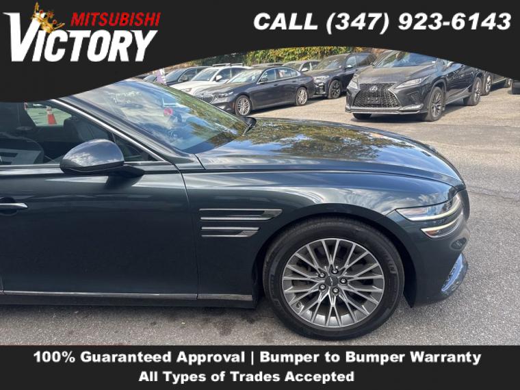 2023 Genesis G80 2.5T Hallasan Green 4D Sedan Save yourself Time and Money - Fill out a credit application online at victorymitsubishi.com and get pre-APPROVED! Financing available for all types of credit with low monthly payment that will fit you budget. Down Payment low as $599. Same day delivery. View our entire inventory by visiting our virtual showroom at victorymitsubishi.com - Only 2 blocks away from Exit 13 off I-95 or Minutes from exit 7 on the Hutchinson Parkway. While we make every effort to ensure the data listed here is correct, there may be instances where the pricing, options or vehicle features may be listed incorrectly. Dealer cannot be held liable for data that is listed incorrectly. to see more pictures of this vehicle or call us at (347) 923-6143 today to schedule your test drive. please refer to dealer’s website for exact pricing and for any incentives that we may apply! Our address is 4070 Boston Road, Bronx, NY 10475.