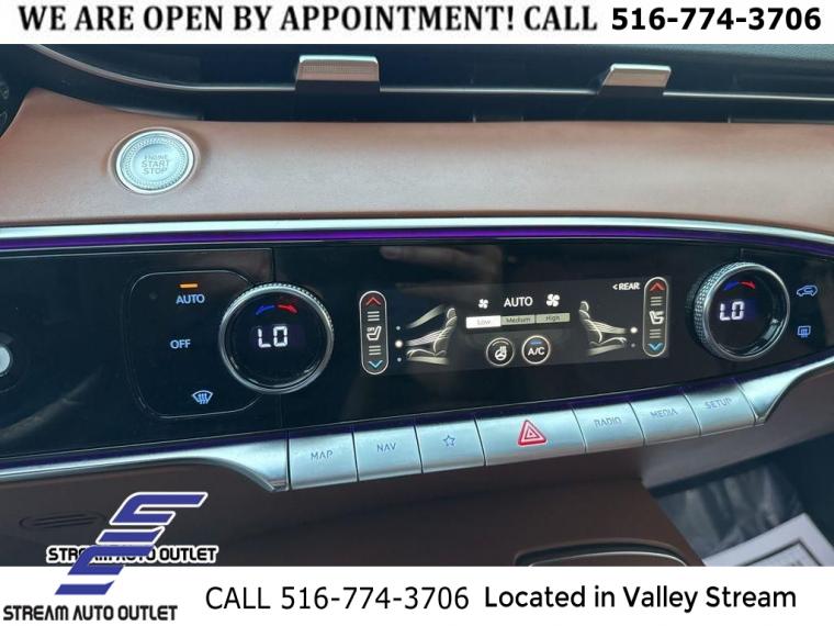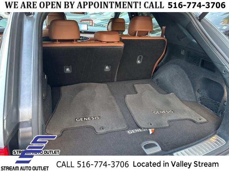 Navigation System, Option Group 02, Advanced Package, Cargo Package, Select Package, 9 Speakers, AM/FM radio: SiriusXM, Lexicon Premium Audio, Radio: AM/FM/SiriusXM/HD Premium Audio System, Air Conditioning, Automatic temperature control, Front dual zone A/C, Rear window defroster, 2nd Row 110V AC Power Outlet, Power driver seat, Power steering, Power windows, Remote keyless entry, Steering wheel mounted audio controls, Four wheel independent suspension, Speed-sensing steering, Traction control, 4-Wheel Disc Brakes, ABS brakes, Anti-whiplash front head restraints, Dual front impact airbags, Dual front side impact airbags, Emergency communication system, Front anti-roll bar, Knee airbag, Low tire pressure warning, Monobloc Front Brakes, Occupant sensing airbag, Overhead airbag, Rear anti-roll bar, Power Tilt & Slide Panoramic Sunroof, Power Liftgate, Brake assist, Electronic Stability Control, Exterior Parking Camera Rear, Rear Parking Sensors, Auto High-beam Headlights, Delay-off headlights, Fully automatic headlights, First Aid Kit, Panic alarm, Security system, Speed control, Bumpers: body-color, Front & Rear Mudguards, Heated door mirrors, Power door mirrors, Power Folding ECM Mirrors w/Genesis Logo Lamp, Remote Smart Parking Assist, Reverse Parking Collision-Avoidance Assist, Spoiler, Turn signal indicator mirrors, Adjustable Interior Ambient Lighting, Advanced Rear Occupant Alert, Aluminum Trim w/Spin Brushed Pattern, Android Auto & Apple CarPlay, Auto-dimming Rear-View mirror, Blind-Spot View Monitor, Driver door bin, Driver vanity mirror, Front reading lights, Garage door transmitter: HomeLink, Heated Steering Wheel, Illuminated entry, Integrated Memory System (IMS), Manual Rear Door Shades, Outside temperature display, Overhead console, Passenger vanity mirror, Power Telescoping Steering Wheel, Rear reading lights, Rear seat center armrest, Surround View Monitor, Tachometer, Telescoping steering wheel, Tilt steering wheel, Trip computer, Up Seatback Cargo Mat, Wave Line Backlit Trim, 4-Way Power Lumbar Front Passenger Seat, Front Bucket Seats, Heated Front Bucket Seats, Heated front seats, Leather Seating Surfaces, Leatherette Seating Surfaces, Power passenger seat, Split folding rear seat, Ventilated Front Seats, Cargo Net, Front Center Armrest w/Storage, Passenger door bin, Alloy wheels, Wheels: 18" Real Steel Gray Alloy, Wheels: 19" Dark Hyper Silver Aluminum, Rain sensing wipers, Rear window wiper, Speed-Sensitive Wipers, Variably intermittent wipers, 4.181 Axle Ratio, * NYS INSPECTION INCLUDED *, * FULL INTERIOR / EXTERIOR DETAIL *, * BLUETOOTH *, * SUNROOF / MOONROOF*, * LEATHER SEATS *, * LIMITED NYS LEMON LAW WARRANTY INCLUDED *, *FRESH OIL CHANGE *, * 150 MULTI POINT INSPECTION *, APPLE CAR PLAY/ANDROID AUTO