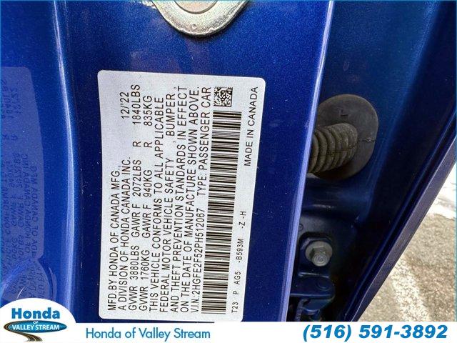 For more information on this 2023 Honda Civic, please call Honda of Valley Stream at (516) 591-3892 or with the contact form on this page. This vehicle's vin number is 2HGFE2F52PH512067 and is recorded as being in stock at Honda of Valley Stream at 164 E. Sunrise Highway in Valley Stream. See all cars from this dealership.