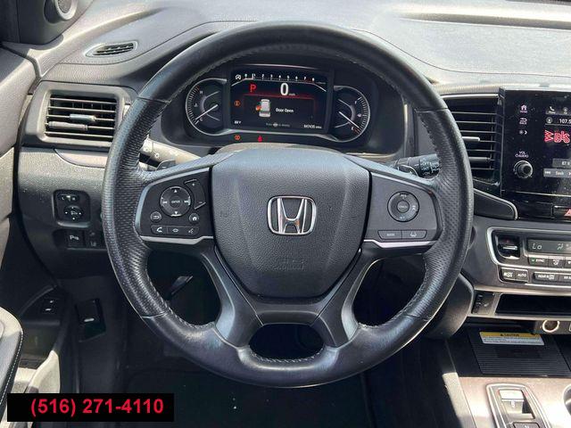 7 Speakers, AM/FM radio: SiriusXM, Radio data system, Radio: 215-Watt Audio System w/7 Speakers, Air Conditioning, Automatic temperature control, Front dual zone A/C, Rear air conditioning, Rear window defroster, Power driver seat, Power steering, Power windows, Remote keyless entry, Steering wheel mounted audio controls, A/V remote: CabinControl, Four wheel independent suspension, Speed-sensing steering, Traction control, 4-Wheel Disc Brakes, ABS brakes, Dual front impact airbags, Dual front side impact airbags, Emergency communication system: HondaLink Assist, Front anti-roll bar, Low tire pressure warning, Occupant sensing airbag, Overhead airbag, Rear anti-roll bar, Power moonroof, Power Liftgate, Blind Spot Information (BSI) System warning, Brake assist, Electronic Stability Control, Lane departure: Lane Keeping Assist System (LKAS) active, Exterior Parking Camera Rear, Auto High-beam Headlights, Delay-off headlights, Fully automatic headlights, Panic alarm, Security system, Speed control, Bumpers: body-color, Heated door mirrors, Power door mirrors, Spoiler, Turn signal indicator mirrors, Apple CarPlay/Android Auto, Auto-dimming Rear-View mirror, Driver door bin, Driver vanity mirror, Front reading lights, Garage door transmitter: HomeLink, Illuminated entry, Outside temperature display, Overhead console, Passenger seat mounted armrest, Passenger vanity mirror, Rear reading lights, Rear seat center armrest, Tachometer, Telescoping steering wheel, Tilt steering wheel, Trip computer, Driver's Seat Mounted Armrest, Front Bucket Seats, Front Center Armrest, Heated Front Bucket Seats, Heated front seats, Leather-Trimmed Seats, Power passenger seat, Split folding rear seat, Passenger door bin, Alloy wheels, Wheels: 20" Pewter Gray Alloy, Rear window wiper, Variably intermittent wipers, 4.334 Axle Ratio