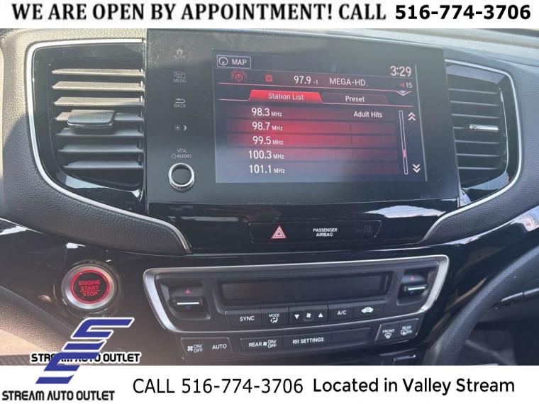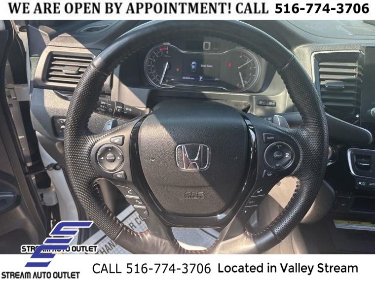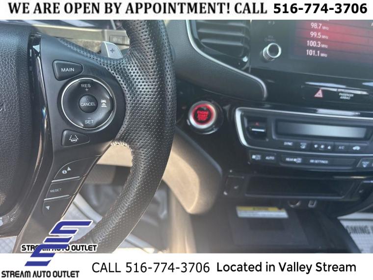 Honda Satellite-Linked Navigation System, Navigation system: Honda Satellite-Linked Navigation System, 8 Speakers, AM/FM radio: SiriusXM, Radio data system, Radio: 540-Watt Premium Audio System w/8 Speakers, SiriusXM, Air Conditioning, Automatic temperature control, Front dual zone A/C, Rear air conditioning, Rear window defroster, Bluetooth® Hands-Free Link, Memory seat, Power driver seat, Power steering, Power windows, Remote keyless entry, Steering wheel mounted audio controls, Four wheel independent suspension, Speed-sensing steering, Traction control, 4-Wheel Disc Brakes, ABS brakes, Dual front impact airbags, Dual front side impact airbags, Front anti-roll bar, Low tire pressure warning, Occupant sensing airbag, Overhead airbag, Rear anti-roll bar, Power moonroof, Blind Spot Information (BSI) System warning, Brake assist, Electronic Stability Control, Exterior Parking Camera Rear, Auto High-beam Headlights, Delay-off headlights, Front fog lights, Fully automatic headlights, Panic alarm, Security system, Speed control, Bumpers: body-color, Heated door mirrors, Power door mirrors, Rear step bumper, Turn signal indicator mirrors, Apple CarPlay/Android Auto, Auto-dimming Rear-View mirror, Compass, Driver door bin, Driver vanity mirror, Front reading lights, Garage door transmitter: HomeLink, Heated steering wheel, Illuminated entry, Outside temperature display, Overhead console, Passenger seat mounted armrest, Passenger vanity mirror, Rear reading lights, Rear seat center armrest, Tachometer, Telescoping steering wheel, Tilt steering wheel, Trip computer, Driver's Seat Mounted Armrest, Front Bucket Seats, Heated Front Bucket Seats, Heated front seats, Leather Seat Trim, Power passenger seat, Split folding rear seat, Passenger door bin, Alloy wheels, Wheels: 18" Exclusive Gloss Black Alloy, Variably intermittent wipers, 4.33 Axle Ratio, * NYS INSPECTION INCLUDED *, * FULL INTERIOR / EXTERIOR DETAIL *, * BLUETOOTH *, * LIMITED NYS LEMON LAW WARRANTY INCLUDED *, *FRESH OIL CHANGE *, * 150 MULTI POINT INSPECTION *
