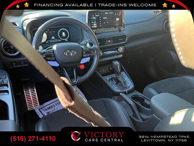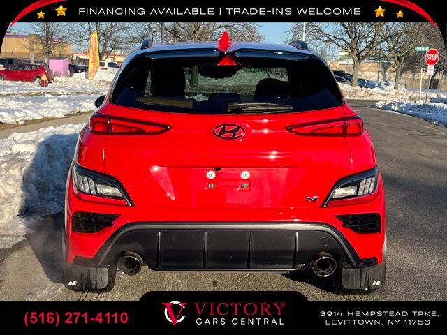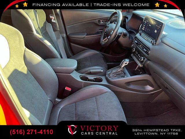 All pricing and details are believed to be accurate, but we do not warrant or guarantee such accuracy. The prices shown above may vary from region to region, as will incentives, and are subject to change. All cars are sold cosmetically As-Is. Vehicle information is based on standard equipment and may vary from vehicle to vehicle. Call or email for complete vehicle specific information. Price Does not include tax, title, license, destination charges, finance charges, or any reconditioning fees. Our special Internet pricing cannot be extended without a printed copy of the online pricing. The in-store price may exceed our special online pricing. Sorry but we cannot extend special pricing without a printed copy of the on-line pricing. To take advantage of our special Internet discounts, please print this page and present it to your salesperson at the BEGINNING of the transaction. Special Internet pricing posted on this ad/coupon/promotion is only available to customers who reference such pricing & present the ad at time of sale otherwise our store standard list price applies. Please be advised this ad is a Special Internet only ad. Prices can be modified and adjusted weekly, daily and sometimes hourly due to inquiries, bidding and website traffic on any Vehicles. All displayed inventory is subject to prior sale and all prices expire at midnight on the date displayed. Every reasonable effort has been made to ensure the accuracy of the information contained on this site, however absolute accuracy cannot be guaranteed. Advertised special excludes state tax, title, license, registration, NY state inspection, NYS tire recycling fee, finance charges, and dealer fees if applicable. Please verify any information in question with the dealership sales manager. This is easily done by calling us at (516) 271-4110 or by visiting us at the dealership. **With approved credit. Racing Red 2023 Hyundai Kona N FWD 8 Speed Dual Clutch 2.0L I4 DGI DOHC 16V Turbocharged