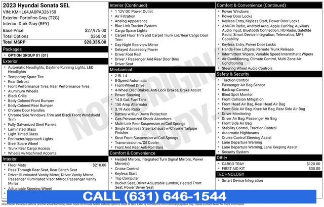 2023 Hyundai Sonata SEL Portofino Gray 8-Speed Automatic with SHIFTRONIC Dark Gray Cloth. CARFAX One-Owner. 27/37 City/Highway MPG