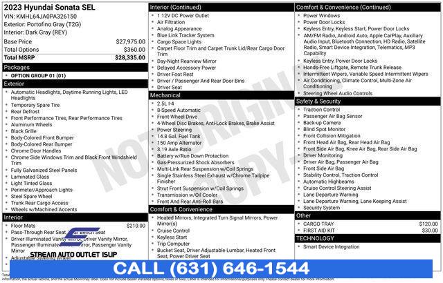 For more information on this 2023 Hyundai Sonata, please call Stream Auto Outlet Islip at (631) 646-1544 or with the contact form on this page. This vehicle's vin number is KMHL64JA0PA326150 and is recorded as being in stock at Stream Auto Outlet Islip at 2232 Sunrise Hwy in Islip. See all cars from this dealership.