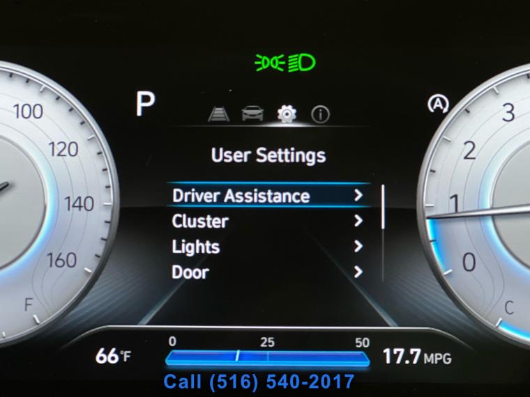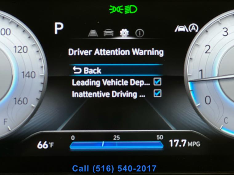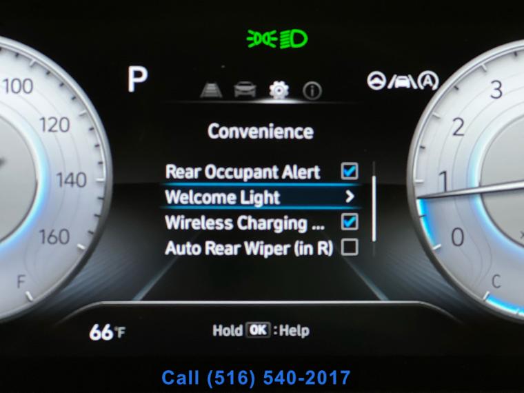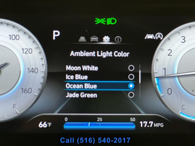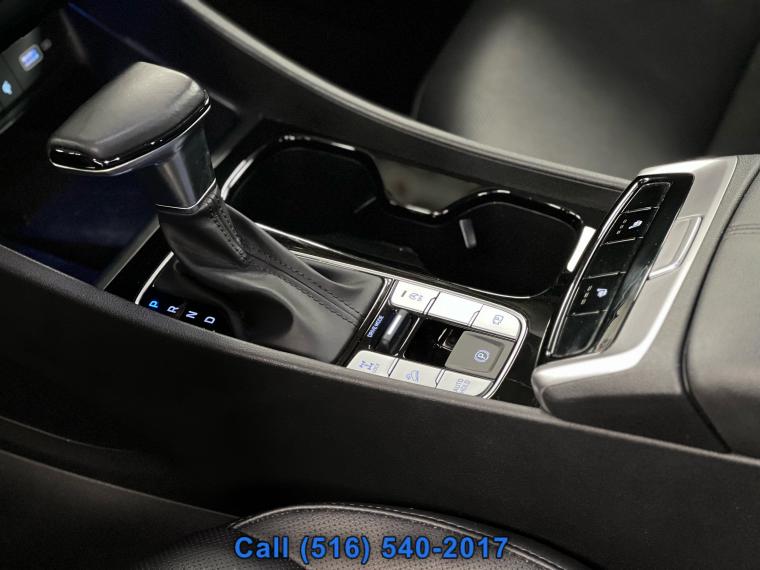 Sunroof/Moonroof, Remote Start, Navigation System, Leather Seats, Heated Seats, Bluetooth, Backup Camera, Seating capacity: 5, Passenger seat direction: Front passenger seat with 4-way directional controls, Front head restraints: Height adjustable front seat head restraints, Front head restraint control: Manual front seat head restraint control, Rear seats fixed or removable: Fixed rear seats, Reclining rear seats: Manual reclining rear seats, Rear seats: Rear bench seat, Rear seat folding position: Fold forward rear seatback, Folding rear seats: 60-40 folding rear seats, Rear head restraints: Height adjustable rear seat head restraints, Rear head restraint control: Manual rear seat head restraint control, Rear head restraint control: 3 rear seat head restraints, Front seatback upholstery: Cloth front seatback upholstery, Headliner material: Cloth headliner material, Headliner coverage: Full headliner coverage, Floor covering: Full carpet floor covering, Panel insert: Piano black and metal-look instrument panel insert, Gearshifter material: Urethane gear shifter material, Door panel insert: Piano black and metal-look door panel insert, Console insert material: Piano black console insert, Interior accents: Metal-look interior accents, Rear seatback upholstery: Carpet rear seatback upholstery, Climate control: Manual climate control, Cabin air filter: Cabin air filter, Rear under seat ducts: Rear under seat climate control ducts, Rear console climate control ducts: Rear console climate control ducts, Steering wheel material: Urethane steering wheel, Steering wheel tilt: Manual tilting steering wheel, Steering wheel telescopic: Manual telescopic steering wheel, Tinted windows: Deep tinted windows, Armrests rear: Rear seat center armrest, Armrests front center: Front seat center armrest, Manual passenger seat controls: Passenger seat manual reclining and fore/aft control, Floor coverage: Full floor coverage, Passenger doors rear left: Conventional left rear passenger door, Door mirrors: Power door mirrors, Rear cargo door: Power liftgate rear cargo door, Heated door mirrors: Heated driver and passenger side door mirrors, Passenger doors rear right: Conventional right rear passenger door, Visor driver expandable coverage: Driver visor with expandable coverage, Visor driver mirror: Driver visor mirror, Visor illuminated driver mirror: Illuminated driver visor mirror, Visor passenger expandable coverage: Passenger visor with expandable coverage, Visor passenger mirror: Passenger visor mirror, Visor illuminated passenger mirror: Illuminated passenger visor mirror, Beverage holders: Front beverage holders, Rear seat direction: Front facing rear seat, Shifter boot: Vinyl shifter boot, Floor console: Full floor console, Floor console storage: Covered floor console storage, Overhead console: Mini overhead console, Glove box: Illuminated glove box, Number of beverage holders: 8 beverage holders, Seatback storage pockets: 2 seatback storage pockets, Door bins front: Driver and passenger door bins, Door bins rear: Rear door bins, Cargo floor type: Carpet cargo area floor, Trunk lid trim: Plastic trunk lid trim, Cargo tie downs: Cargo area tie downs, Cargo light: Cargo area light, Concealed cargo storage: Cargo area concealed storage, Multi-level cargo floor: Multi-level cargo floor, Steering mounted audio control: Steering wheel mounted audio controls, Cruise control: Cruise control with steering wheel mounted controls, Adaptive cruise control: Smart Cruise Control with Stop & Go (SCC), Cargo access: Smart Liftgate proximity cargo area access release, Trunk hatch: Trunk/hatch auto-latching, Driver foot rest: Driver foot rest, Accessory power: Retained accessory power, 12V power outlets: 2 12V power outlets, Wireless device charging: Front wireless smart device charging, Door locks: Power door locks with 2 stage unlocking, Keyfob keyless entry: Keyfob keyless entry, All-in-one key: All-in-one remote fob and ignition key, Auto door locks: Auto-locking doors, Fob engine controls: Smart key with hands-free access and push button start, Valet key: Valet key, Fuel door lock: Power fuel door lock, Tailgate control: Tailgate/power door lock, Keyfob cargo controls: Keyfob trunk control, Keyfob window controls: Keyfob window control, Keyfob remote start: Keyfob remote start, Tachometer: Tachometer, Engine/electric motor temperature gauge: Engine/electric motor temperature gauge, Clock: Digital clock, Temperature display: Exterior temperature display, Speedometer: Redundant digital speedometer, Folding door mirrors: Manual folding door mirrors, Engine temperature warning: Engine temperature warning, Battery charge warning: Battery charge warning, Low level warnings: Low level warning for oil fuel, washer fluid and brake fluid, Key in vehicle warning: Key in vehicle warning, Bulb warning: Bulb failure warning, Door ajar warning: Rear cargo area ajar warning, Service interval warning: Blue Link Connected Car Service (3-year complimentary subscription) service interval indicator, Oil pressure warning: Oil pressure warning, Rear seat check warning: Rear Occupant Alert (ROA) rear seat check warning, Trip computer: Trip computer, First-row windows: Power first-row windows, Third-row windows: Fixed third-row windows, Second-row windows: Power second-row windows, One-touch down window: Driver and passenger one-touch down windows, One-touch up window: Driver and passenger one-touch up windows, Wipers: Variable intermittent front windshield wipers, Rear window defroster: Rear window defroster, Rear windshield: Fixed rear windshield, Beverage holders rear: Rear beverage holders, Driver information center: Driver information center, Day/Night rearview mirror: Day/Night rearview mirror, Rear windshield wipers: Rear windshield wipers, Front reading lights: Front reading lights, Variable panel light: Variable instrument panel light, Illuminated glove box: Illuminated glove box, Trip odometer: Trip odometer, Front windshield sol