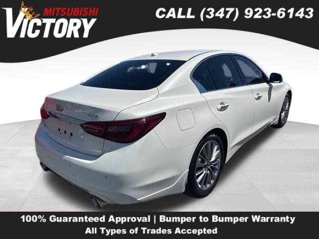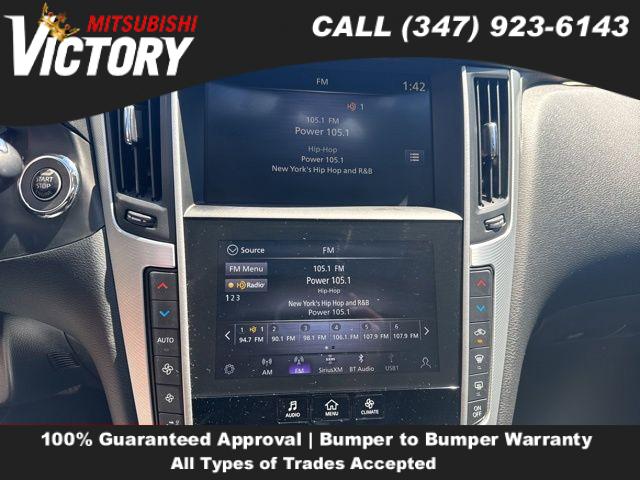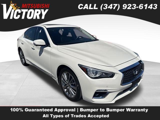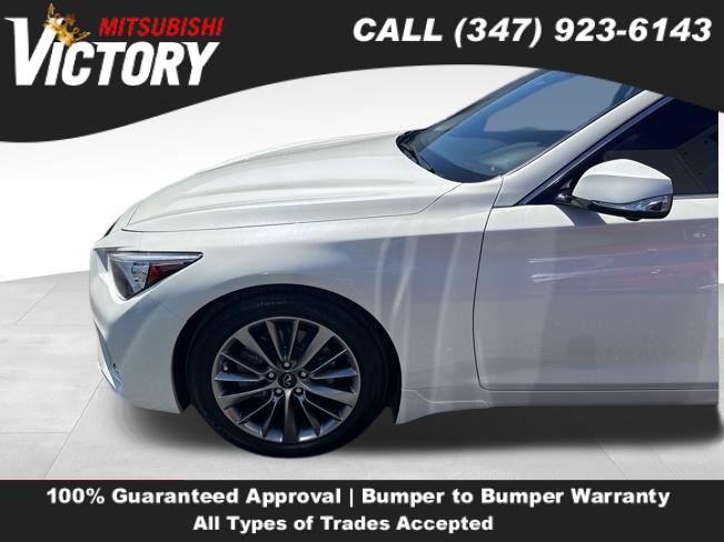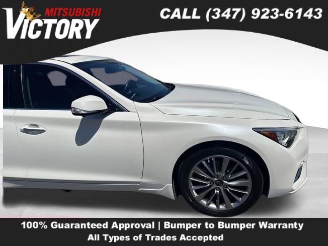 2023 INFINITI Q50 LUXE Majestic White 4D Sedan Save yourself Time and Money - Fill out a credit application online at victorymitsubishi.com and get pre-APPROVED! Financing available for all types of credit with low monthly payment that will fit you budget. Down Payment low as $599. Same day delivery. View our entire inventory by visiting our virtual showroom at victorymitsubishi.com - Only 2 blocks away from Exit 13 off I-95 or Minutes from exit 7 on the Hutchinson Parkway. While we make every effort to ensure the data listed here is correct, there may be instances where the pricing, options or vehicle features may be listed incorrectly. Dealer cannot be held liable for data that is listed incorrectly. to see more pictures of this vehicle or call us at (347) 923-6143 today to schedule your test drive. please refer to dealer’s website for exact pricing and for any incentives that we may apply! Our address is 4070 Boston Road, Bronx, NY 10475.