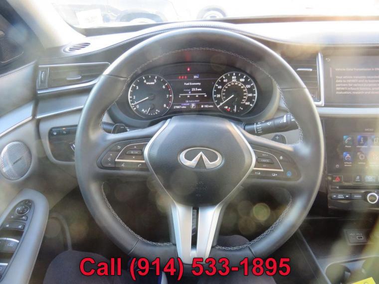 This 2023 INFINITI QX50 4dr LUXE AWD features a 2.0L 4 CYLINDER 4cyl Gasoline engine. It is equipped with a Continuously Variable transmission. The vehicle is Not Specified with a Not Specified interior. It is offered As-Is, extended warranty is available. - Air Conditioning, Climate Control, Dual Zone Climate Control, Cruise Control, Tinted Windows, Power Steering, Power Mirrors, Leather Steering Wheel, Power Drivers Seat, Power Passenger Seat, Clock, Tachometer, Homelink System, Telescoping Steering Wheel, Steering Wheel Radio Controls, Sunroof, Moonroof, Driver Airbag, Passenger Airbag, Security System, Rear Defogger, Intermittent Wipers, AM/FM, CD Player, Aux. Audio Input, Carpeted Floor Mats, Center Arm Rest, Child Proof Door Locks, Daytime Running Lights, Front Heated Seats, Heated Mirrors, Overhead Console, Parking Sensors, Power Lift Gate, Rear Spoiler, Rear Spoiler, Rear Wipers, Rear-Side Airbags, Remote Trunk Lid, Reverse Camera, Roll Stability Control, Side Curtain Airbags, Sliding Rear Window, Tire Pressure Monitor, Vanity Mirrors - Contact Michael Maratto at (914) 533-1895 for more information. -