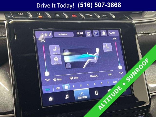 TIRES: 265/50R20 BSW A/S LRR, POWER SUNROOF, GLOBAL BLACK CAPRI LEATHERETTE/SUEDE SEATS, QUICK ORDER PACKAGE 23B ALTITUDE -inc: Engine: 3.6L V6 24V VVT UPG I w/ESS Transmission: 8-Speed Automatic 8HP50 Selectable Tire Fill Alert Remote Start System Secondary Active Grille Shutters Rain Sensitive Windshield Wipers Wireless Charging Pad Heated Front Seats Altitude Appearance Package Black Headliner Delete Laredo Badge 115V Auxiliary Power Outlet Gloss Black Exterior Accents Heated Steering Wheel Power Liftgate, ENGINE: 3.6L V6 24V VVT UPG I W/ESS (STD), WHEELS: 20 X 8.5 GLOSS BLACK PAINTED ALUMINUM -inc: Tires: 265/50R20 BSW A/S LRR, DIAMOND BLACK CRYSTAL PEARLCOAT, FRONT LICENSE PLATE BRACKET, TRANSMISSION: 8-SPEED AUTOMATIC 8HP50