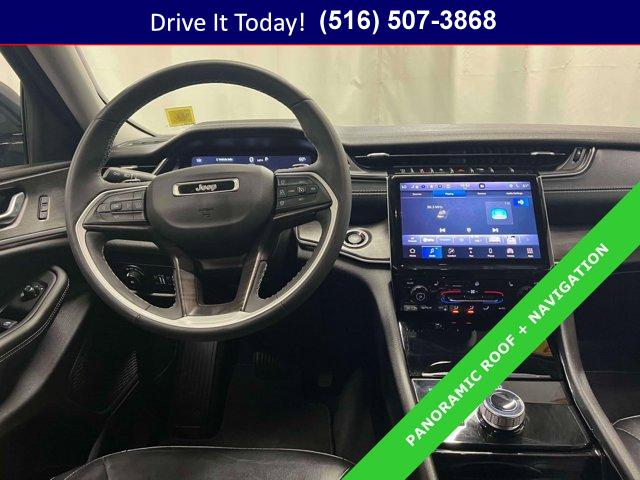 • 4WD capability meets everyday comfort in this 2023 Jeep Grand Cherokee 4D Sport Utility, powered by the smooth 3.6L V6 paired to an 8-speed automatic. Diamond Black Crystal Pearlcoat paint complements a Global Black interior with Capri leatherette seating for a modern, refined look that feels right at home in city traffic or on weekend getaways. Active Noise Control, Normal Duty Suspension, and four wheel independent suspension help deliver a calm, confident ride. The dual-pane panoramic sunroof brightens the cabin, while thoughtful conveniences like a power rear gate and split folding rear seat make errands and road trips simpler.Stay connected and in control with a 10.1 inch multimedia display running Uconnect 5 Nav and AM/FM radio with SiriusXM with 360L. Navigation, steering wheel media controls, and audio memory put key functions at your fingertips. Comfort is dialed in with heated front seats, heated rear seats, and a heated steering wheel, plus dual-zone automatic temperature control. ParkView Rear Back-Up Camera, auto high-beam headlights, fully automatic headlights, front fog lights, and speed-sensitive wipers support confident driving from day to night. Multiple airbags including knee airbags, Electronic Stability Control, traction control, 4-wheel disc brakes with ABS, and both front and rear anti-roll bars add reassuring safety. A memory seat, power driver and passenger seats, remote keyless entry, security system, and an overhead console offer everyday ease. Style upgrades include Gloss Black Exterior Accents, molded-in-color black and gloss black roof rails, and alloy wheels. The power rear gate, garage door transmitter, and an emergency communication system round out a well-equipped cabin for modern life & more.This Grand Cherokee shows 44,188 miles. It has the poise and features you want for daily driving with the versatility for longer trips.VIP+ ProgramEvery purchase includes our VIP+ Program benefits. Enjoy Unlimited Oil and Filter Changes for 1 year, then included with every factory maintenance thereafter. You also receive Complimentary NYS Inspections, Complimentary Loaner Cars, and Complimentary 24/7 Rescue and Towing. These benefits are For Life and Transferable, designed to add lasting value and peace of mind long after you drive home.Purchase with confidence as this Certified Pre-Owned Vehicle (CPOV) meets stringent Jeep standards. Coverage includes a 7-Year / 100,000-Mile Powertrain Limited Warranty, a thorough 125-Point Inspection, 24-Hour Roadside Assistance, a Rental Car Allowance, and a CARFAX Vehicle History Report. It is a smart way to get a certified Jeep Grand Cherokee with built-in value and support.More About UsOur vehicles are hand selected for quality and long-term reliability, then reconditioned prior to sale so you can buy with confidence. Certified vehicles meet strict standards, including brake life no less than 50 percent, helping ensure on-road safety from day one. We emphasize trust, preparation, and peace of mind as a proud member of the VIP Auto Group serving the community since 1957. We Will Satisfy You!Built for commuting and weekends alike, this SUV?s 4WD traction, heated seats and steering wheel, and robust V6 make winter drives and wet-weather commutes more secure. The power rear gate eases loading, and ParkView Rear Back-Up Camera helps with tight parking. If you?re looking for an affordable used car with year-round usability, this Grand Cherokee delivers strong long-term value for daily life across Long Island and New York.Ready to see it in person? Local shoppers can call now, schedule a test drive, or learn more at WestburyJeep.com, where you can browse up-to-date inventory and current pricing. Whether you?re comparing an SUV, an affordable used car, or a certified Jeep Grand Cherokee in NY, we are here to help you find the right fit. Disclaimer: The above details are a general overview of the vehicle?s equipment and may vary by individual vehicle. Please verify all features and specifications prior to purchase.