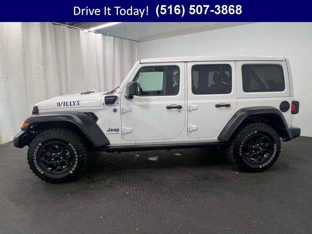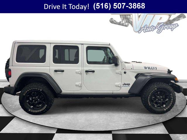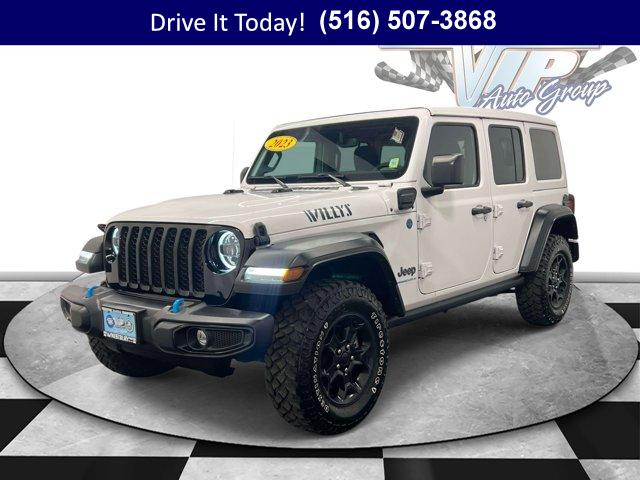 Certified capability meets everyday comfort in this 2023 Jeep Wrangler 4D Sport Utility, pairing confident 4WD with a smooth 8-speed automatic for year-round drivability. Finished in Bright White Clearcoat with a clean black cloth interior, it brings open-air freedom with the Sky 1-Touch Power Top and the rugged attitude of the Willys package, including black aluminum wheels, a black grille, rock protection sill rails, and distinctive Willys decals. The 2.0L I4 DOHC engine balances strong response with refined manners, making this Wrangler easy to live with during the week and ready for the trail on the weekend.Inside, Uconnect 4C Nav with an 8.4 inch multimedia display puts Apple CarPlay and Android Auto, built-in GPS navigation, HD Radio, SiriusXM Traffic Plus, and SiriusXM Travel Link at your fingertips. A 4G LTE Wi-Fi Hot Spot, Integrated Voice Command with Bluetooth, and 9 speakers keep you connected and entertained. Convenience shines with remote start, a universal garage door opener, an auto-dimming rear-view mirror, dual-zone automatic temperature control, multiple USB ports including charge-only outlets, and a 115-volt auxiliary power outlet. ParkView Rear Back-Up Camera, LED Premium Reflector Headlamps, and front LED fog lamps enhance visibility, while Electronic Stability Control, traction control, ABS with 4-wheel disc brakes, and a security system boost confidence. Steering wheel media controls, power windows, remote keyless entry, and an outside temperature display simplify every drive, plus Off-Road Info Pages let you monitor key data on the trail & more.Trail-ready hardware includes a 3.73 rear axle ratio and Anti-Spin Differential Rear Axle for surefooted traction. Normal Duty Suspension delivers everyday comfort, and molded-in-color fender flares shrug off adventure. It is a Wrangler that looks the part and backs it up when pavement ends.With just 15,382 miles, this Wrangler has been lightly driven for its year. If you?re looking for a used car on Long Island that blends daily practicality with weekend fun, this certified Jeep Wrangler deserves a spot on your list.VIP+ ProgramEnjoy Unlimited Oil and Filter changes for 1 year, then included with every factory maintenance thereafter, plus Complimentary NYS Inspections, Complimentary Loaner Cars, and Complimentary 24/7 Rescue and Towing. VIP+ benefits are For Life and Transferable, adding peace of mind and real long-term value to your purchase.Purchase with confidence knowing this Jeep qualifies as a Certified Pre-Owned Vehicle (CPOV). Benefits include a 7-Year / 100,000-Mile Powertrain Limited Warranty, a 125-Point Inspection, 24-Hour Roadside Assistance, a Rental Car Allowance, and a CARFAX Vehicle History Report.More About UsOur vehicles are hand selected for quality and long-term reliability, and each one receives thorough reconditioning before sale so you can buy with confidence. Certified vehicles meet strict standards, including brake life of no less than 50 percent, to help ensure safety and value from day one. We emphasize trust, preparation, and peace of mind in every interaction. As a proud member of the VIP Auto Group serving our community since 1957, we live our promise: We Will Satisfy You!For commuters and weekend explorers across the Northeast, this Wrangler?s 4WD, LED lighting, and traction-enhancing axle setup deliver winter confidence and all-season reliability. Whether you?re cross-shopping a used truck in New York or want an affordable used car with real capability, this Jeep offers strong resale potential and long-term value.NY shoppers, call now to learn more, schedule a test drive, or explore financing options. Visit WestburyJeep.com to view up-to-date inventory and current pricing on your certified Jeep Wrangler and other great choices. Description and features are intended as a general overview and may vary by vehicle. Please verify equipment and availability prior to purchase.