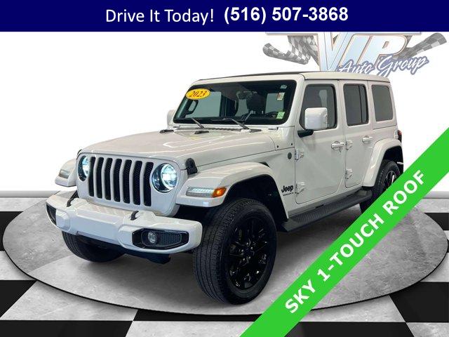 Certified Pre-Owned Vehicle 2023 Jeep Wrangler 4D Sport Utility is built for year-round confidence with proven 4WD traction and a smooth 8-speed automatic. Bright White Clearcoat paint pairs with a Black leather interior to create a clean, modern look that feels refined on daily commutes and weekend escapes. Nappa leather seating, dual-zone automatic climate control, and an easy-driving V6 deliver comfort and usability in city traffic, on the highway, and on unpaved shortcuts around the Northeast. Open-air freedom is just a touch away with the Sky 1-Touch Power Top, removable rear quarter windows, and included storage bags for quick transitions from sealed to sunshine. Heavy duty suspension with gas shocks adds stability, while side steps help every passenger climb in with ease.Inside, the Uconnect 4C Nav system with an 8.4 inch multimedia display brings built-in Navigation, Apple CarPlay, Android Auto, AM/FM SiriusXM, and 9 speakers for clear sound. Steering wheel media controls keep your focus on the road, and an auto-dimming rear-view mirror, garage door transmitter, and remote keyless entry streamline every start. Cold mornings are easier with heated front seats, a heated steering wheel, and the Remote Start System. LED premium reflector headlamps, LED taillamps, front LED fog lamps, and LED daytime running light accents enhance visibility and presence. For added confidence, Blind Spot and Cross Path Detection, ParkSense Rear Park Assist System, and ParkView Rear Back-Up Camera help with lane changes and tight parking. SiriusXM Guardian emergency communication and a full suite of stability technologies including Electronic Stability Control, Traction Control, 4-wheel disc ABS, and Brake Assist work quietly in the background & more.This Wrangler shows 49,638 miles and has the reassurance of thoughtful engineering like the Dana M210 wide HD tube front axle and Dana M220 wide rear axle. Body-color details add polish, from the grille and bumpers with step pads to full body-color fender flares, door handles, and fuel filler door. Premium dark exterior accents, High Altitude badging, and alloy wheels complete the upscale look.VIP+ ProgramEnjoy our VIP+ Program benefits designed to add long-term value and peace of mind. You get Unlimited Oil and Filter changes for 1 year, then included with every factory maintenance thereafter, plus Complimentary NYS Inspections, Complimentary Loaner Cars, and Complimentary 24/7 Rescue and Towing. These benefits are For Life and Transferable, making ownership simpler for you now and attractive to the next owner later.Purchase With ConfidenceThis certified Jeep Wrangler qualifies as a Certified Pre-Owned Vehicle (CPOV). Coverage includes a 7-Year / 100,000-Mile Powertrain Limited Warranty, a thorough 125-Point Inspection, 24-Hour Roadside Assistance, a Rental Car Allowance, and a CARFAX Vehicle History Report. Shop smart and drive assured with factory-backed benefits and careful inspection standards behind you.More About UsEvery vehicle on our lot is hand selected for quality and long-term reliability, then professionally reconditioned prior to sale so you can purchase with confidence. Our certified vehicles meet strict standards, including brake life no less than 50 percent, to help ensure safety and value from day one. Count on a team that emphasizes trust, preparation, and peace of mind. We are a proud member of the VIP Auto Group serving the community since 1957. We Will Satisfy You!If you?re looking for an affordable used car with all-season traction and modern tech, or want a certified Jeep Wrangler that balances daily comfort with weekend capability, this High Altitude build delivers commuter-friendly efficiency, winter confidence with the Cold Weather Group, and long-term value through robust driveline components and comprehensive safety systems.Call now, schedule a test drive, or learn more at WestburyJeep.com, where you can browse up-to-date inventory and current pricing for shoppers across New York. This description and feature list are intended as a general overview and may vary by vehicle. Please verify equipment, pricing, and availability prior to purchase.