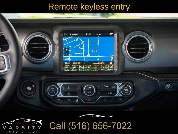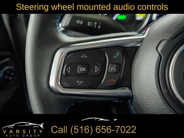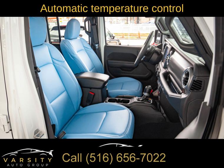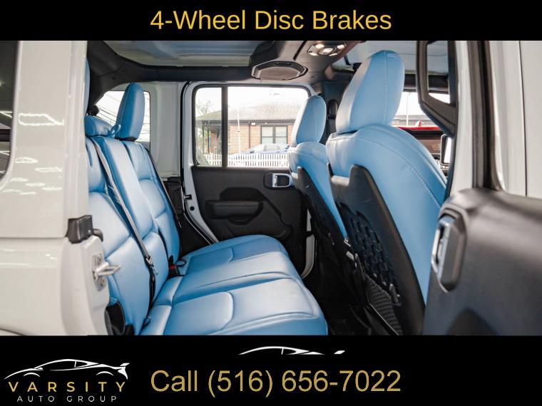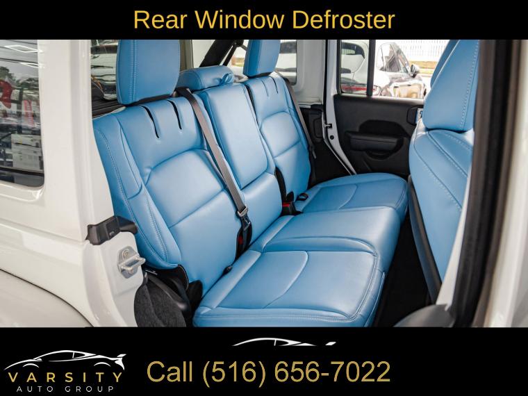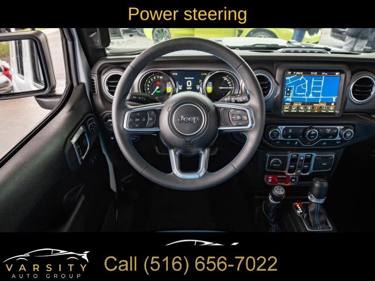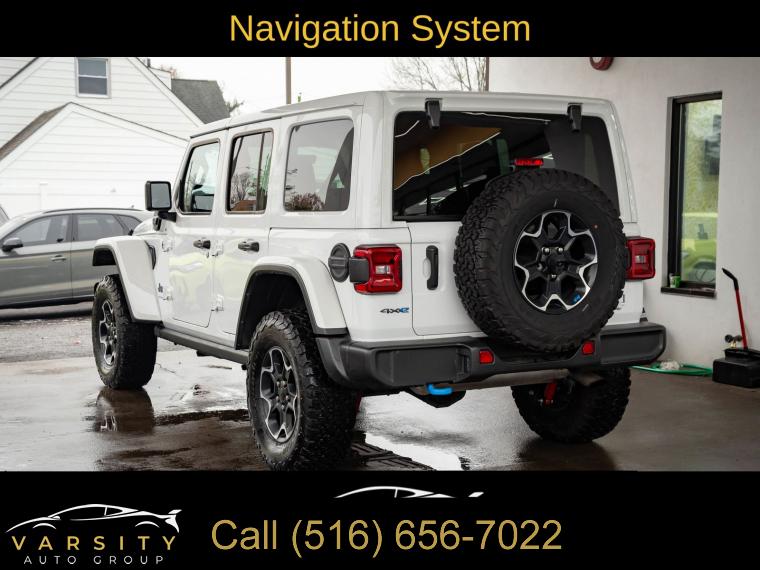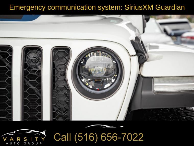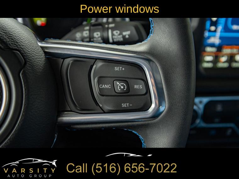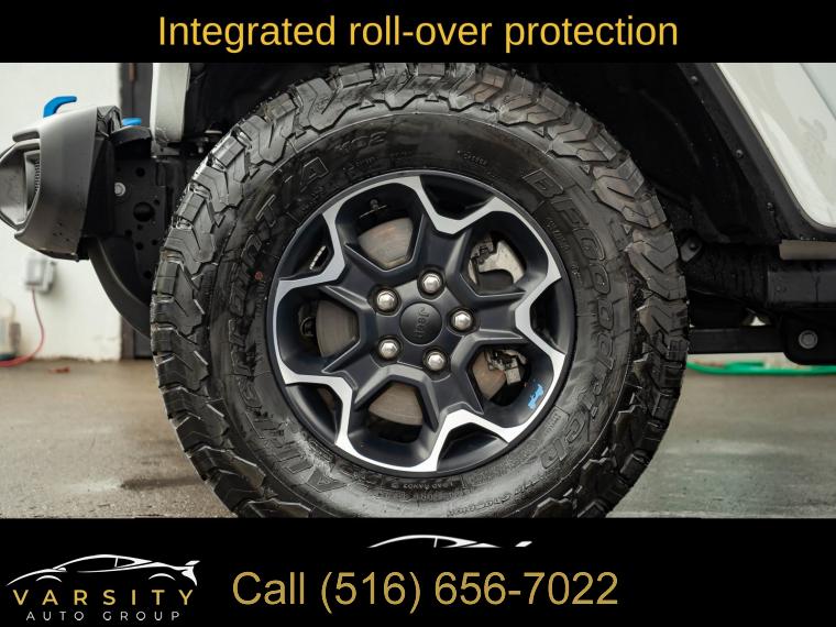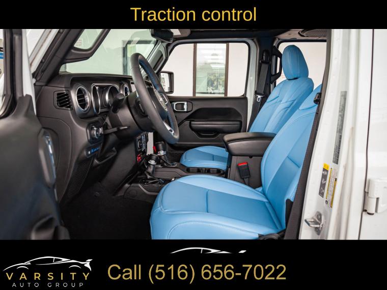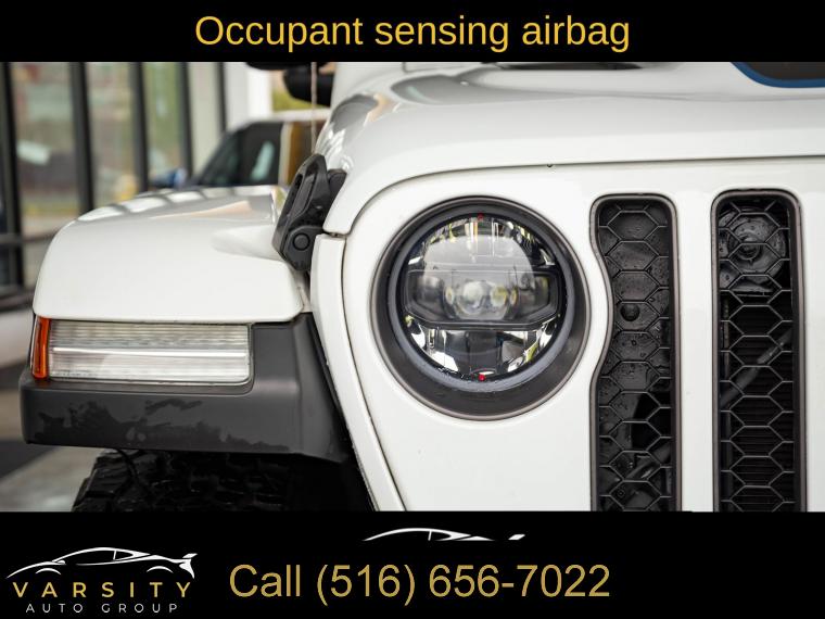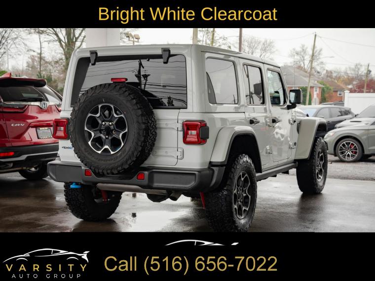 Navigation System, Quick Order Package 29V Rubicon, Body Color 3-Piece Hard Top, 9 Speakers, AM/FM radio: SiriusXM, Radio data system, Radio: Uconnect 4C Nav w/8.4" Display, Air Conditioning, Automatic temperature control, Front dual zone A/C, Rear Window Defroster, Power steering, Power windows, Remote keyless entry, Steering wheel mounted audio controls, Performance Suspension, Traction control, 4-Wheel Disc Brakes, ABS brakes, Dual front impact airbags, Dual front side impact airbags, Emergency communication system: SiriusXM Guardian, Front anti-roll bar, Integrated roll-over protection, Low tire pressure warning, Occupant sensing airbag, Rear anti-roll bar, Brake assist, Electronic Stability Control, ParkView Rear Back-Up Camera, Delay-off headlights, Front fog lights, Fully automatic headlights, Panic alarm, Security system, Speed control, Body Color Rubicon Highline Flare, Heated door mirrors, Power door mirrors, Apple CarPlay/Android Auto, Auto-dimming Rear-View mirror, Compass, Driver door bin, Driver vanity mirror, Front reading lights, Garage door transmitter, Illuminated entry, Outside temperature display, Passenger vanity mirror, Rear reading lights, Tachometer, Telescoping steering wheel, Tilt steering wheel, Trip computer, Voltmeter, Front Bucket Seats, Premium Cloth Low-Back Bucket Seats, Split folding rear seat, Freedom Panel Storage Bag, Front Center Armrest w/Storage, Passenger door bin, Alloy wheels, Wheels: 17" x 7.5" Machined w/Black Pockets, Rear Window Wiper/Washer, Variably intermittent wipers, 4.10 Rear Axle Ratio, The Price you See, is the Price You Pay!!!, Jeep Wrangler Rubicon 20th Anniversary Edition 4xe, Bright White Clearcoat, Bahama Blue Leather interior