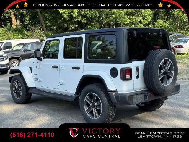 All pricing and details are believed to be accurate, but we do not warrant or guarantee such accuracy. The prices shown above may vary from region to region, as will incentives, and are subject to change. All cars are sold cosmetically As-Is. Vehicle information is based on standard equipment and may vary from vehicle to vehicle. Call or email for complete vehicle specific information. Price Does not include tax, title, license, destination charges, finance charges, or any reconditioning fees. Our special Internet pricing cannot be extended without a printed copy of the online pricing. The in-store price may exceed our special online pricing. Sorry but we cannot extend special pricing without a printed copy of the on-line pricing. To take advantage of our special Internet discounts, please print this page and present it to your salesperson at the BEGINNING of the transaction. Special Internet pricing posted on this ad/coupon/promotion is only available to customers who reference such pricing & present the ad at time of sale otherwise our store standard list price applies. Please be advised this ad is a Special Internet only ad. Prices can be modified and adjusted weekly, daily and sometimes hourly due to inquiries, bidding and website traffic on any Vehicles. All displayed inventory is subject to prior sale and all prices expire at midnight on the date displayed. Every reasonable effort has been made to ensure the accuracy of the information contained on this site, however absolute accuracy cannot be guaranteed. Advertised special excludes state tax, title, license, registration, NY state inspection, NYS tire recycling fee, finance charges, and dealer fees if applicable. Please verify any information in question with the dealership sales manager. This is easily done by calling us at (516) 271-4110 or by visiting us at the dealership. **With approved credit. Bright White Clearcoat 2023 Jeep Wrangler Sahara 4WD 8-Speed Automatic 2.0L I4 DOHC