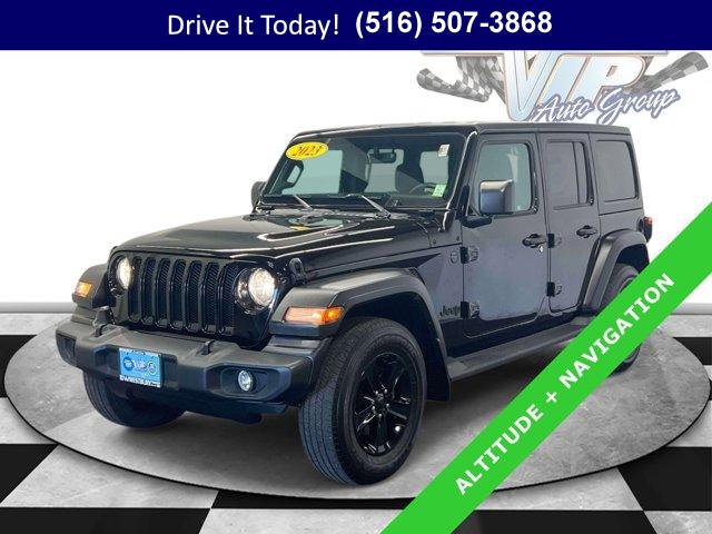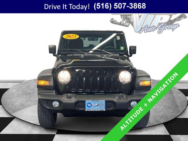Certified Pre-Owned capability meets everyday comfort in this 2023 Jeep Wrangler 4D Sport Utility, engineered for confident driving in all seasons. Finished in Black Clearcoat with matching black cloth seats, it blends rugged style with practical refinement. The proven 3.6L V6 and 8-speed automatic deliver smooth response in traffic and strong torque when the road turns to snow, gravel, or sand, while 4WD traction brings peace of mind on wet or wintry mornings. With 33,618 miles, it is ready for your daily commute, weekend trails, and everything in between.Altitude Package details add a clean, modern look with gloss black aluminum wheels, deep tint sunscreen windows, and a body color grille with gloss black rings. The Black 3-Piece Hard Top with MOPAR headliner helps quiet the cabin and insulate against heat and cold, and the Freedom Panel storage bag keeps the front panels secure when you want open-air driving. Inside, automatic temperature control with air filtering maintains a comfortable cabin, and heated front seats plus a heated steering wheel make cold starts far easier on frosty Northeast mornings. Power heated mirrors, a rear window defroster, and a rear wiper round out the all-weather practicality.Stay connected and in control with the available Uconnect 4C Nav system on an 8.4-inch multimedia display that supports Apple CarPlay, Google Android Auto, HD Radio, and SiriusXM. The Alpine Premium Audio System upgrades your soundtrack, while 4G LTE Wi-Fi Hot Spot capability keeps passengers online. You also get SiriusXM Guardian emergency and assistance services, Travel Link, and Traffic Plus to help plan smarter routes. A 7.0-inch color driver display and Off-Road Info Pages put useful data in view. Convenience is built in with passive entry, remote keyless entry, an auto-dimming rear-view mirror, a universal garage door opener, and steering wheel media controls. Advanced driver confidence comes from ParkView Rear Back-Up Camera, ParkSense Rear Park Assist System, and Blind Spot & Cross Path Detection, plus LED taillamps, automatic headlamps, and a security alarm for added assurance & more.This Wrangler has been used as intended and presents with 33,618 miles. It pairs trail-capable hardware with day-to-day comfort, making it a smart choice for drivers who want authentic Jeep utility without sacrificing daily drivability.VIP+ ProgramEnjoy our VIP+ Program benefits that make ownership easier from day one. Get Unlimited Oil and Filter changes for 1 year, then included with every factory maintenance thereafter. Receive Complimentary NYS Inspections, Complimentary Loaner Cars, and Complimentary 24/7 Rescue and Towing. These benefits are For Life and Transferable, adding lasting value long after you drive home.As a Jeep Certified Pre-Owned Vehicle (CPOV), this Wrangler adds factory-backed confidence. Coverage includes a 7-Year / 100,000-Mile Powertrain Limited Warranty, a thorough 125-Point Inspection, 24-Hour Roadside Assistance, a Rental Car Allowance, and a CARFAX Vehicle History Report. Shop with assurance knowing it meets strict Jeep CPOV standards.More About UsEvery vehicle we offer is hand selected for quality and long-term reliability, then thoughtfully reconditioned before sale so you can purchase with confidence. Our certified models meet strict criteria, including brake life no less than 50 percent, to help ensure you get a dependable ride from day one. We emphasize trust, preparation, and peace of mind as a proud member of the VIP Auto Group serving the community since 1957. We Will Satisfy You!A Wrangler like this brings commuter-friendly comfort, winter confidence, and long-term value. Heated seats, a heated steering wheel, 4WD traction, and a hard top help you handle slick mornings and slushy parking lots with ease, while the 8-speed automatic, advanced safety tech, and robust CPOV protection support your daily routine in Long Island and trips across New York.If your looking for a used car on Long Island or browsing for a used truck in new york, this certified Jeep Wrangler stands out as an affordable used car with genuine capability and modern tech. Call now, schedule a test drive, or learn more at WestburyJeep.com, where you can view up-to-date inventory and current pricing. Description and features are a general overview and may vary by vehicle. Please confirm exact equipment at time of purchase.