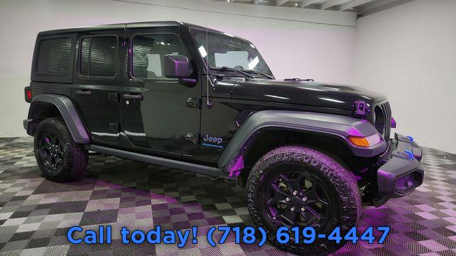 Recent Arrival! 2023 Jeep Wrangler Willys 4xe 2.0L I4 DOHC, ABS brakes, Alloy wheels, Compass, Electronic Stability Control, Front dual zone A/C, Heated door mirrors, Illuminated entry, Low tire pressure warning, ParkView Rear Back-Up Camera, Passenger door bin, Remote keyless entry, Traction control.