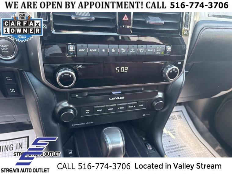 Navigation system: Lexus Enform Dynamic Navigation, Premium Package, 9 Speakers, AM/FM radio: SiriusXM, CD player, Radio data system, Radio: Lexus Multimedia System w/Navigation, Air Conditioning, Automatic temperature control, Dual Front & Rear Auto Air Conditioner, Front dual zone A/C, Rear window defroster, Memory seat, Power driver seat, Power steering, Power windows, Remote keyless entry, Steering wheel memory, Steering wheel mounted audio controls, Speed-sensing steering, Traction control, 4-Wheel Disc Brakes, ABS brakes, Anti-whiplash front head restraints, Dual front impact airbags, Dual front side impact airbags, Emergency communication system: Safety Connect (3-year trial), Front anti-roll bar, Front wheel independent suspension, Knee airbag, Low tire pressure warning, Occupant sensing airbag, Overhead airbag, Rear anti-roll bar, Rear side impact airbag, Power moonroof, Brake assist, Electronic Stability Control, Exterior Parking Camera Rear, Auto High-beam Headlights, Delay-off headlights, Fully automatic headlights, Panic alarm, Security system, Speed control, Bumpers: body-color, Heated door mirrors, Illuminated running boards, LED Front Fog & Driving Lamp, Power door mirrors, Roof rack: rails only, Spoiler, Turn signal indicator mirrors, Apple CarPlay/Android Auto, Auto tilt-away steering wheel, Auto-dimming Rear-View mirror, Compass, Driver door bin, Driver vanity mirror, Front reading lights, Garage door transmitter: HomeLink, Illuminated entry, Leather Shift Knob, Leather steering wheel, Outside temperature display, Overhead console, Passenger seat mounted armrest, Passenger vanity mirror, Rear reading lights, Rear seat center armrest, Tachometer, Telescoping steering wheel, Tilt steering wheel, Trip computer, 3rd row seats: split-bench, Driver's Seat Mounted Armrest, Front & Rear Heated Seats, Front Bucket Seats, NuLuxe Seat Trim, NuLuxe Seat Trim (EA), Power passenger seat, Split folding rear seat, Ventilated Front Seats, Passenger door bin, 18" x 7.5J Aluminum Alloy Wheels, Alloy wheels, Windshield Wiper Control w/Rain Sensor, Rear window wiper, Variably intermittent wipers, Windshield De-Icer, 3.909 Axle Ratio, * NYS INSPECTION INCLUDED *, * FULL INTERIOR / EXTERIOR DETAIL *, * BLUETOOTH *, * LIMITED NYS LEMON LAW WARRANTY INCLUDED *, *FRESH OIL CHANGE *, * 150 MULTI POINT INSPECTION *