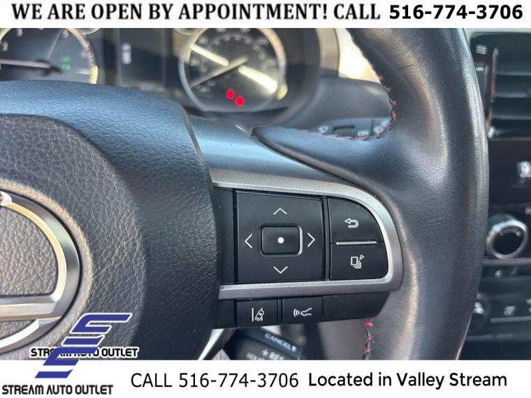 Navigation system: Lexus Enform Dynamic Navigation, Premium Package, 9 Speakers, AM/FM radio: SiriusXM, CD player, Radio data system, Radio: Lexus Multimedia System w/Navigation, Air Conditioning, Automatic temperature control, Dual Front & Rear Auto Air Conditioner, Front dual zone A/C, Rear window defroster, Memory seat, Power driver seat, Power steering, Power windows, Remote keyless entry, Steering wheel memory, Steering wheel mounted audio controls, Speed-sensing steering, Traction control, 4-Wheel Disc Brakes, ABS brakes, Anti-whiplash front head restraints, Dual front impact airbags, Dual front side impact airbags, Emergency communication system: Safety Connect (3-year trial), Front anti-roll bar, Front wheel independent suspension, Knee airbag, Low tire pressure warning, Occupant sensing airbag, Overhead airbag, Rear anti-roll bar, Rear side impact airbag, Power moonroof, Brake assist, Electronic Stability Control, Exterior Parking Camera Rear, Auto High-beam Headlights, Delay-off headlights, Fully automatic headlights, Panic alarm, Security system, Speed control, Bumpers: body-color, Heated door mirrors, Illuminated running boards, LED Front Fog & Driving Lamp, Power door mirrors, Roof rack: rails only, Spoiler, Turn signal indicator mirrors, Apple CarPlay/Android Auto, Auto tilt-away steering wheel, Auto-dimming Rear-View mirror, Compass, Driver door bin, Driver vanity mirror, Front reading lights, Garage door transmitter: HomeLink, Heated Wood & Leather Steering Wheel, Illuminated entry, Leather Shift Knob, Leather steering wheel, Outside temperature display, Overhead console, Passenger seat mounted armrest, Passenger vanity mirror, Rear reading lights, Rear seat center armrest, Tachometer, Telescoping steering wheel, Tilt steering wheel, Trip computer, 3rd row seats: split-bench, Driver's Seat Mounted Armrest, Front & Rear Heated Seats, Front Bucket Seats, NuLuxe Seat Trim, NuLuxe Seat Trim (EA), Power passenger seat, Split folding rear seat, Ventilated Front Seats, Passenger door bin, 18" x 7.5J Aluminum Alloy Wheels, Alloy wheels, Windshield Wiper Control w/Rain Sensor, Rear window wiper, Variably intermittent wipers, Windshield De-Icer, 3.909 Axle Ratio, * NYS INSPECTION INCLUDED *, * FULL INTERIOR / EXTERIOR DETAIL *, * BACK UP CAMERA *, * BLUETOOTH *, * SUNROOF / MOONROOF*, * LIMITED NYS LEMON LAW WARRANTY INCLUDED *, *FRESH OIL CHANGE *, * 150 MULTI POINT INSPECTION *, APPLE CAR PLAY/ANDROID AUTO
