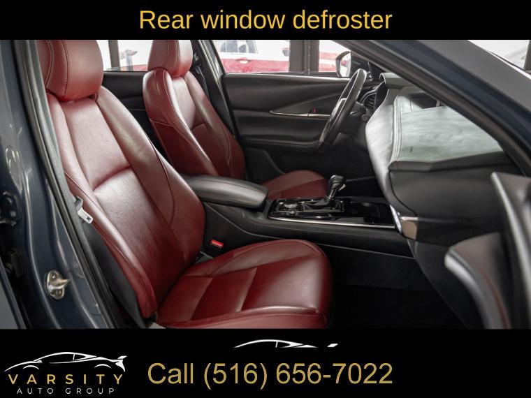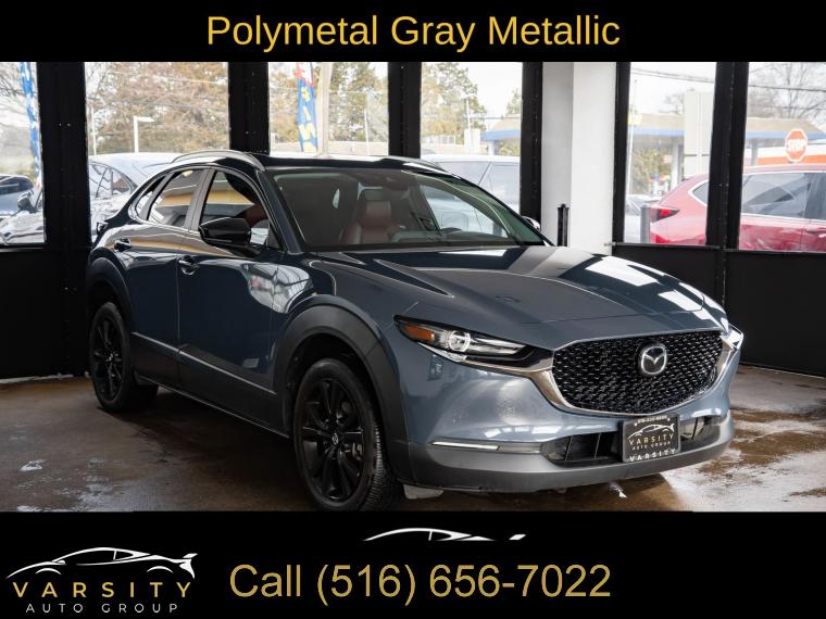 2023 Mazda CX-30 2.5 S Carbon Edition, Polymetal Gray Metallic, Red w/Leather Seat Trim, One Owner, Clean CARFAX, 4-Wheel Disc Brakes, 4.095 Axle Ratio, 8 Speakers, ABS brakes, Air Conditioning, Alloy wheels, AM/FM radio, AppLink/Apple CarPlay and Android Auto, Auto High-beam Headlights, Automatic temperature control, Black Lug Nuts & Black Wheel Locks, Brake assist, Bumpers: body-color, Cargo Cover, Cargo Mat, Compass, Delay-off headlights, Driver door bin, Driver vanity mirror, Dual front impact airbags, Dual front side impact airbags, Electronic Stability Control, Emergency communication system: Mazda Connected Services (3-year complimentary trial included), Exterior Parking Camera Rear, Front anti-roll bar, Front Bucket Seats, Front Center Armrest, Front dual zone A/C, Front reading lights, Front wheel independent suspension, Fully automatic headlights, Heated door mirrors, Heated Front Bucket Seats, Heated front seats, Illuminated entry, Knee airbag, Leather Seat Trim, Leather Shift Knob, Leather steering wheel, Low tire pressure warning, MAZDA CONNECT Infotainment System, Memory seat, Occupant sensing airbag, Outside temperature display, Overhead airbag, Overhead console, Panic alarm, Passenger door bin, Passenger vanity mirror, Power door mirrors, Power driver seat, Power moonroof, Power steering, Power windows, Radio data system, Radio: AM/FM/HD Audio System, Rain sensing wipers, Rear seat center armrest, Rear side impact airbag, Rear window defroster, Rear window wiper, Remote keyless entry, Speed control, Speed-sensing steering, Split folding rear seat, Spoiler, Steering wheel mounted audio controls, Tachometer, Telescoping steering wheel, Tilt steering wheel, Traction control, Trip computer, Turn signal indicator mirrors, Variably intermittent wipers, Wheels: 18" x 7J Aluminum Alloy. Polymetal Gray Metallic 2023 Mazda CX-30 2.5 S Carbon Edition AWD 6-Speed Automatic SKYACTIV® 2.5L 4-Cylinder DOHC 16V 26/33 City/Highway MPG