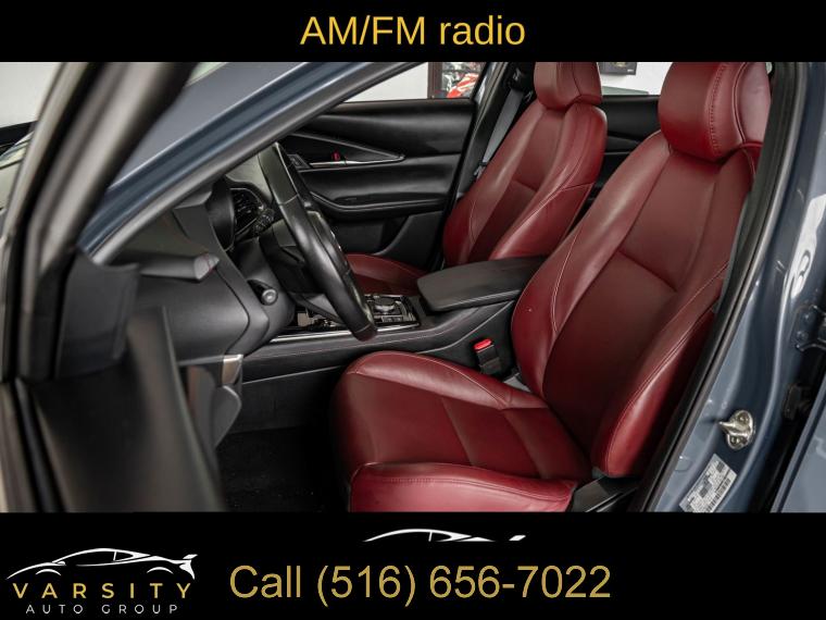 8 Speakers, AM/FM radio, MAZDA CONNECT Infotainment System, Radio data system, Radio: AM/FM/HD Audio System, Air Conditioning, Automatic temperature control, Front dual zone A/C, Rear window defroster, Memory seat, Power driver seat, Power steering, Power windows, Remote keyless entry, Steering wheel mounted audio controls, Speed-sensing steering, Traction control, 4-Wheel Disc Brakes, ABS brakes, Dual front impact airbags, Dual front side impact airbags, Emergency communication system: Mazda Connected Services (3-year complimentary trial included), Front anti-roll bar, Front wheel independent suspension, Knee airbag, Low tire pressure warning, Occupant sensing airbag, Overhead airbag, Rear side impact airbag, Power moonroof, Brake assist, Electronic Stability Control, Exterior Parking Camera Rear, Auto High-beam Headlights, Delay-off headlights, Fully automatic headlights, Panic alarm, Speed control, Bumpers: body-color, Heated door mirrors, Power door mirrors, Spoiler, Turn signal indicator mirrors, AppLink/Apple CarPlay and Android Auto, Cargo Mat, Compass, Driver door bin, Driver vanity mirror, Front reading lights, Illuminated entry, Leather Shift Knob, Leather steering wheel, Outside temperature display, Overhead console, Passenger vanity mirror, Rear seat center armrest, Tachometer, Telescoping steering wheel, Tilt steering wheel, Trip computer, Front Bucket Seats, Front Center Armrest, Heated Front Bucket Seats, Heated front seats, Leather Seat Trim, Split folding rear seat, Cargo Cover, Passenger door bin, Alloy wheels, Black Lug Nuts & Black Wheel Locks, Wheels: 18" x 7J Aluminum Alloy, Rain sensing wipers, Rear window wiper, Variably intermittent wipers, 4.095 Axle Ratio, 2023 Mazda CX-30 2.5 S Carbon Edition, Polymetal Gray Metallic, Red w/Leather Seat Trim, One Owner, Clean CARFAX