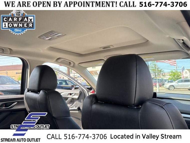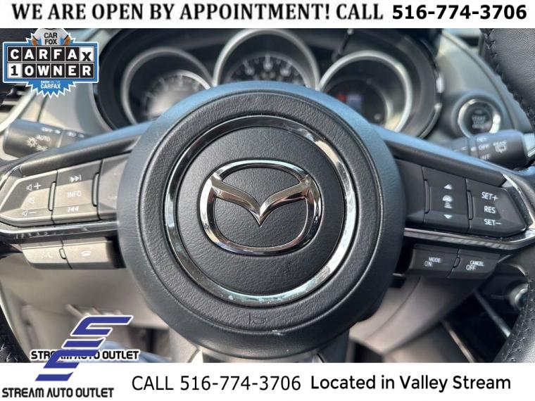 6 Speakers, Infotainment System Voice Command, Mazda Connected Services, Pandora Internet Radio Integration, Radio Broadcast Data System Program Information, Radio data system, Radio: AM/FM Sound System, Air Conditioning, Automatic temperature control, Front dual zone A/C, Rear air conditioning, Rear window defroster, Memory seat, Power driver seat, Power steering, Power windows, Remote keyless entry, Steering wheel mounted audio controls, Four wheel independent suspension, Speed-sensing steering, Traction control, 4-Wheel Disc Brakes, ABS brakes, Dual front impact airbags, Dual front side impact airbags, Emergency communication system: MAZDA CONNECT, Front anti-roll bar, Low tire pressure warning, Occupant sensing airbag, Overhead airbag, Rear anti-roll bar, Power moonroof, Power Liftgate, Brake assist, Electronic Stability Control, Exterior Parking Camera Rear, Auto High-beam Headlights, Delay-off headlights, Front fog lights, Fully automatic headlights, First Aid Kit, Panic alarm, Speed control, Bumpers: body-color, Heated door mirrors, Power door mirrors, Roof rack: rails only, Snowflake White Pearl Mica Paint, Spoiler, Turn signal indicator mirrors, AppLink/Apple CarPlay and Android Auto, Auto-dimming Rear-View mirror, Compass, Driver door bin, Driver vanity mirror, E911 Automatic Emergency Notification, Front reading lights, Garage door transmitter: HomeLink, Heated/Ventilated Front Bucket Seats, Illuminated entry, Leather Shift Knob, Leather steering wheel, Outside temperature display, Overhead console, Passenger vanity mirror, Rear reading lights, Rear seat center armrest, SMS Text Msg Audio Delivery & Reply, Tachometer, Telescoping steering wheel, Tilt steering wheel, Trip computer, 3rd row seats: bench, Front Bucket Seats, Front Center Armrest, Heated front seats, Leather Seat Trim, Power passenger seat, Split folding rear seat, Ventilated front seats, Passenger door bin, Alloy wheels, Black Lug Nuts & Black Wheel Locks, Wheels: 20" x 8.5J Aluminum Alloy, Rain sensing wipers, Rear window wiper, Variably intermittent wipers, 4.411 Axle Ratio, * NYS INSPECTION INCLUDED *, * FULL INTERIOR / EXTERIOR DETAIL *, * BLUETOOTH *, * LIMITED NYS LEMON LAW WARRANTY INCLUDED *, *FRESH OIL CHANGE *, * 150 MULTI POINT INSPECTION *