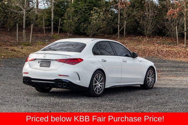 4MATIC®, 11.9 Center Touchscreen Display, 4-Wheel Disc Brakes, Adaptive suspension, Exterior Parking Camera Rear, Front dual zone A/C, Fully automatic headlights, Heated front seats, Power driver seat, Power moonroof, Radio: FrontBass 5-Speaker Audio System, Remote keyless entry, Security system. Priced below KBB Fair Purchase Price! CARFAX One-Owner. 19/26 City/Highway MPG2023 Mercedes-Benz C-Class C 43 AMG® 4MATIC® White C 43 AMG® 4MATIC® 4MATIC® 9-Speed Automatic I4Special pricing ad/promotion is available to customers who reference such pricing and present the ad at the time of sale otherwise store list price applies. Buyer is responsible to verify options/packages. Any error voids the ad. Certified Pre-Owned program available. Same-day delivery In-stock units only. Dealer-installed accessories are extra. Dealer is not responsible for typographical errors. Every vehicle in inventory is equipped with LoJack at an additional cost. The special price expires at the midnight of the publication date. For return & exchange policy visit the website for details. All Prices will be honored as cash prices. Prices do not include the following fees: Doc Fee, tax, tags, DMV fees. Pre-installed LoJack, and Pre-Certification (vary between vehicles) Please visit or call the dealership for complete details.