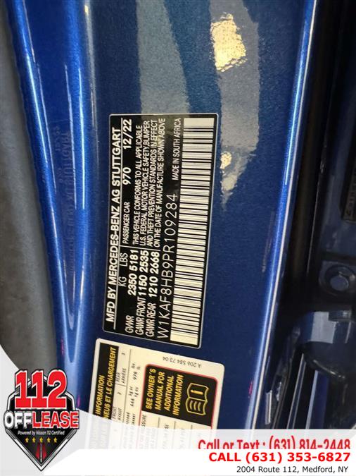 For more information on this 2023 Mercedes-Benz C-Class, please call 112 Off Lease at (631) 353-6827 or with the contact form on this page. This vehicle's vin number is W1KAF8HB9PR109284 and is recorded as being in stock at 112 Off Lease at 2004 Route 112 in Medford. See all cars from this dealership.